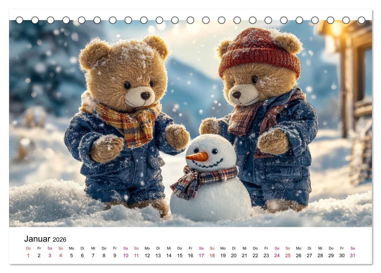Tauchen Sie ein in die zauberhafte Welt der Teddybären. Dieser liebevoll gestaltete Kalender begleitet Sie durch ein Jahr voller bärenstarker Momente von fröhlichen Markteinkäufen über gemütliche Kuschelstunden bis hin zu winterlichen Abenteuern. Lassen Sie si...