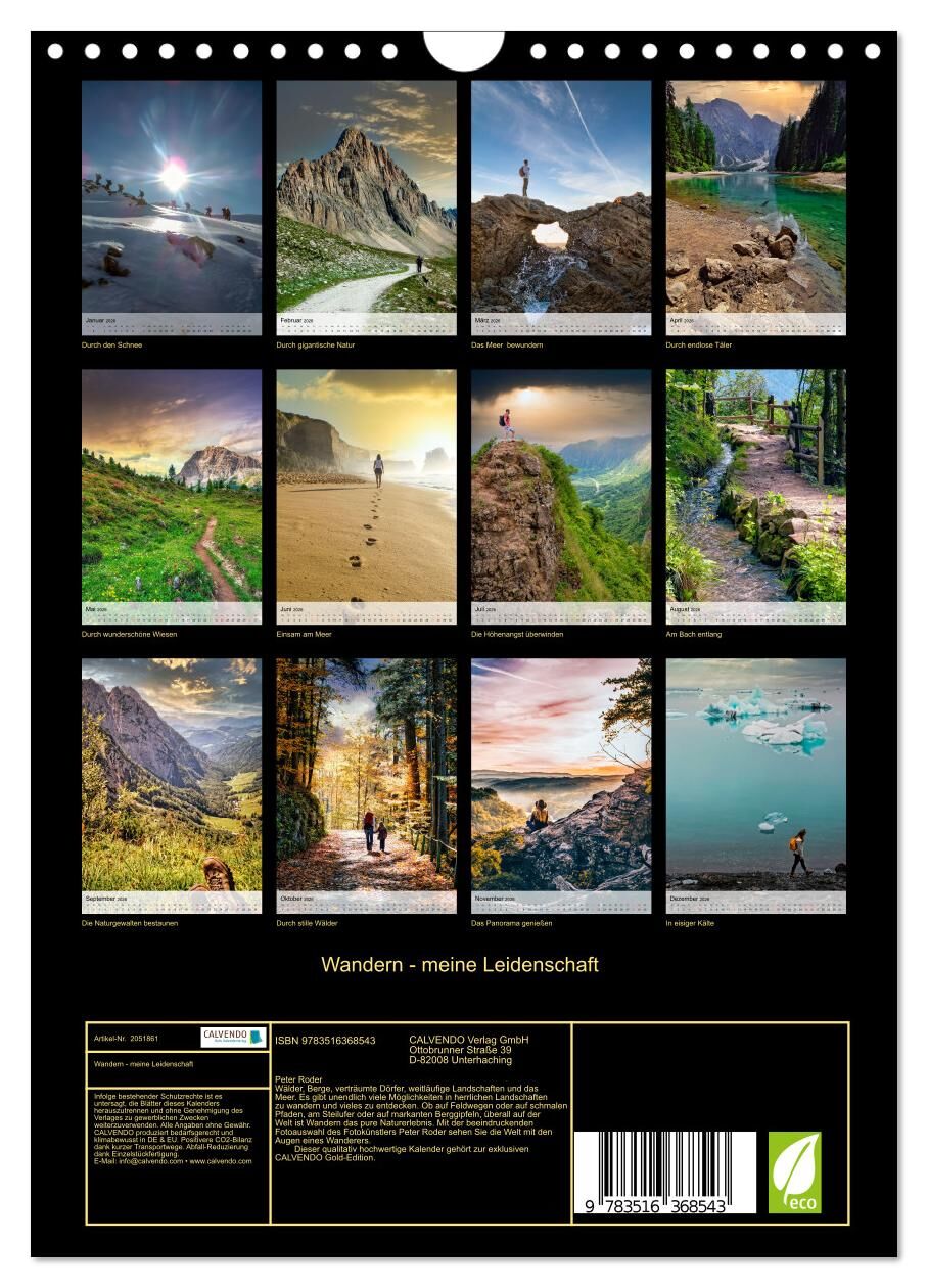 Wandern - meine Leidenschaft (Wandkalender 2026 DIN A4 hoch), CALVENDO Monatskalender
