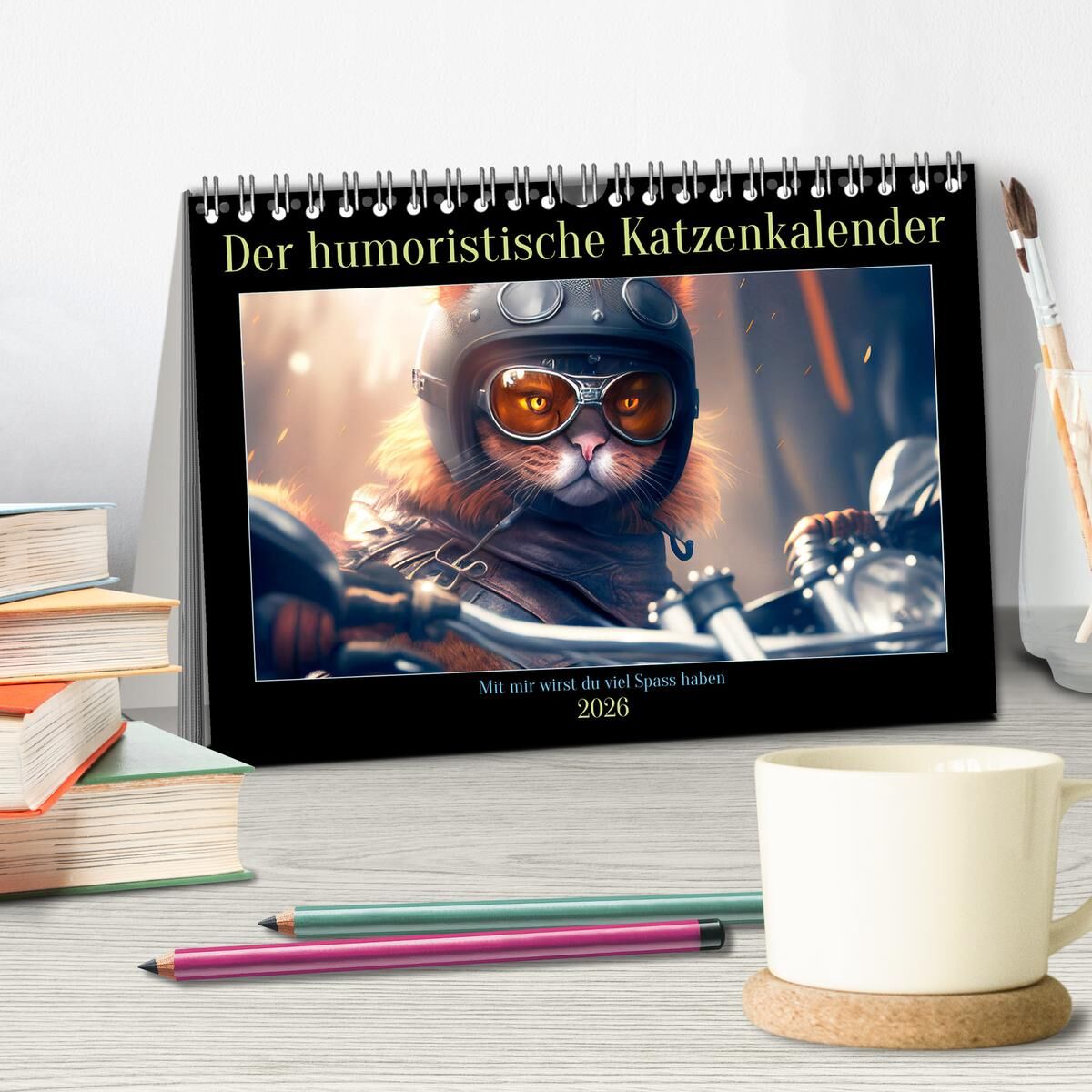 Der humoristische Katzen Kalender (Tischkalender 2026 DIN A5 quer), CALVENDO Monatskalender