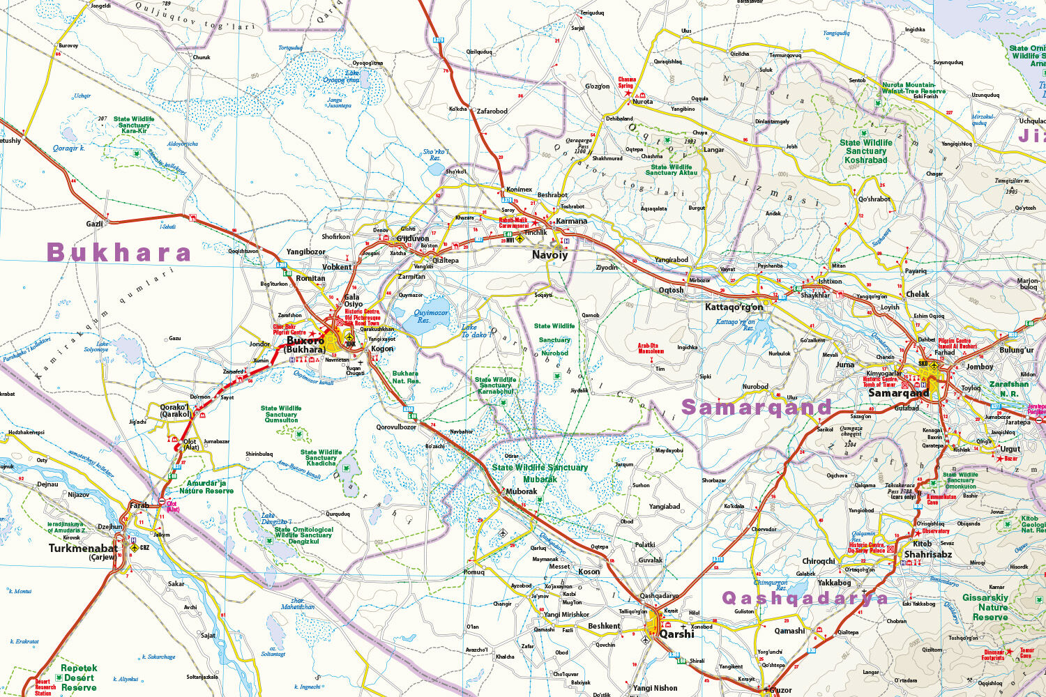 Hochreißfeste und 100% wasserfeste Landkarte "Usbekistan" aus der Serie world mapping project. Reise Know-How Landkarten zeichnen sich durch besonders stabiles Kunststoffpapier aus, das beschreibbar ist wie Papier, sogar mit Bleistift. Der Pappumschlag ist ab...