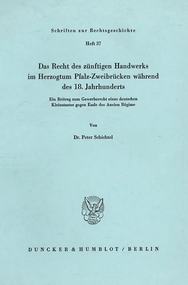 Das Recht des zünftigen Handwerks im Herzogtum Pfalz-Zweibrücken während des 18. Jahrhunderts.