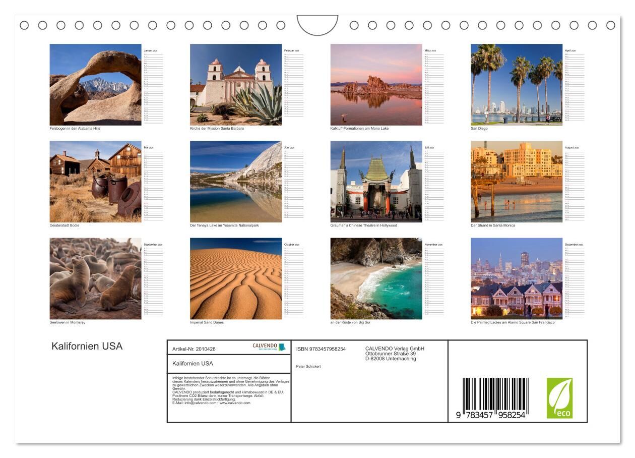 Die ganze Vielfalt des sonnenverwöhnten Küstenstaats im Südwesten der USA in einem Kalender vom Reisefotografen Peter Schickert: Sanddünen und grosse Städte, überwältigende Natur, Traumstrände und historisches aus Wild-West Zeiten in 13 grossformatigen Farbfot...