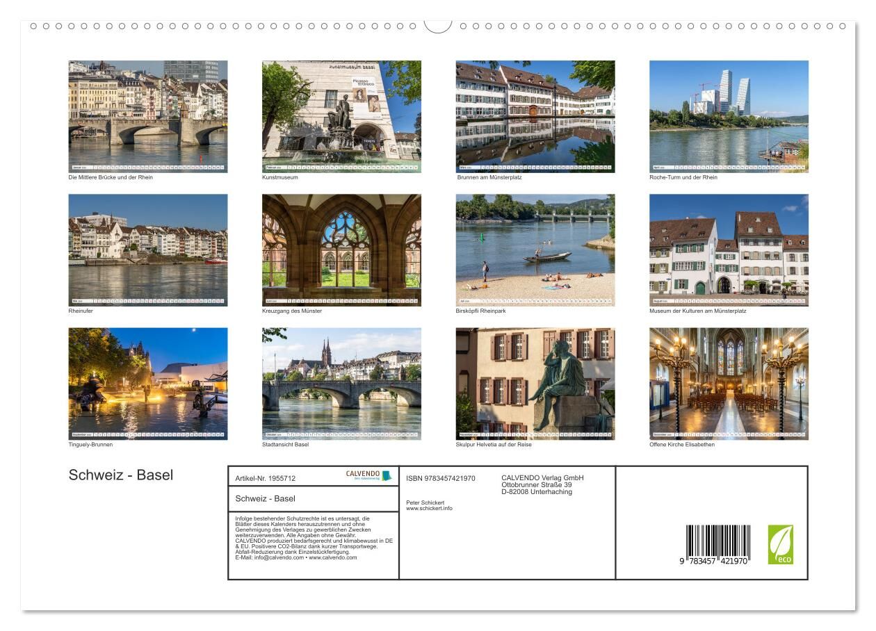 Dieser faszinierende Kalender vom Reisefotografen Peter Schickert.zeigt die Hauptstadt des Kanton Basel von seiner schönsten Seite: am Ufer des Rheins und der wunderbaren historischen Altstadt mit zahlreichen kulturellen Höhepunkten wie dem Basler Münster.