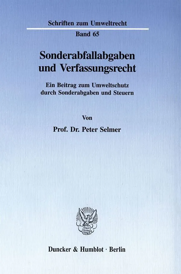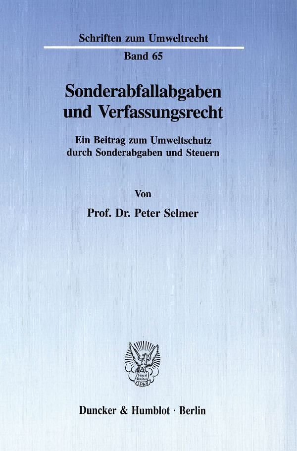 Der Umweltschutz durch öffentliche Abgaben steht mehr denn je im Mittelpunkt der umweltpolitischen und umweltrechtlichen Diskussion. In diesem Zusammenhang hat vor allem die Erhebung von Abfallabgaben, insbesondere von Sonderabfallabgaben, praktische Bedeutung...