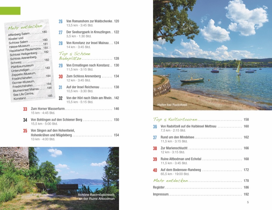 Blumengeschmückte Städte und Dörfer, Uferpromenaden, Jachthäfen, Strandbäder und ein dichtes Wanderwegenetz die Bodensee-Region lässt sich gut zu Fuß erkunden. 40 abwechslungsreiche und meist kindgerechte Touren führen Sie am Seeufer entlang, durch Weinberge u...