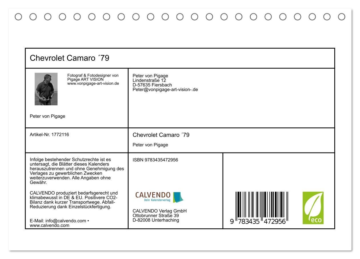 Chevrolet Camaro ´79 (Tischkalender 2025 DIN A5 quer), CALVENDO Monatskalender
