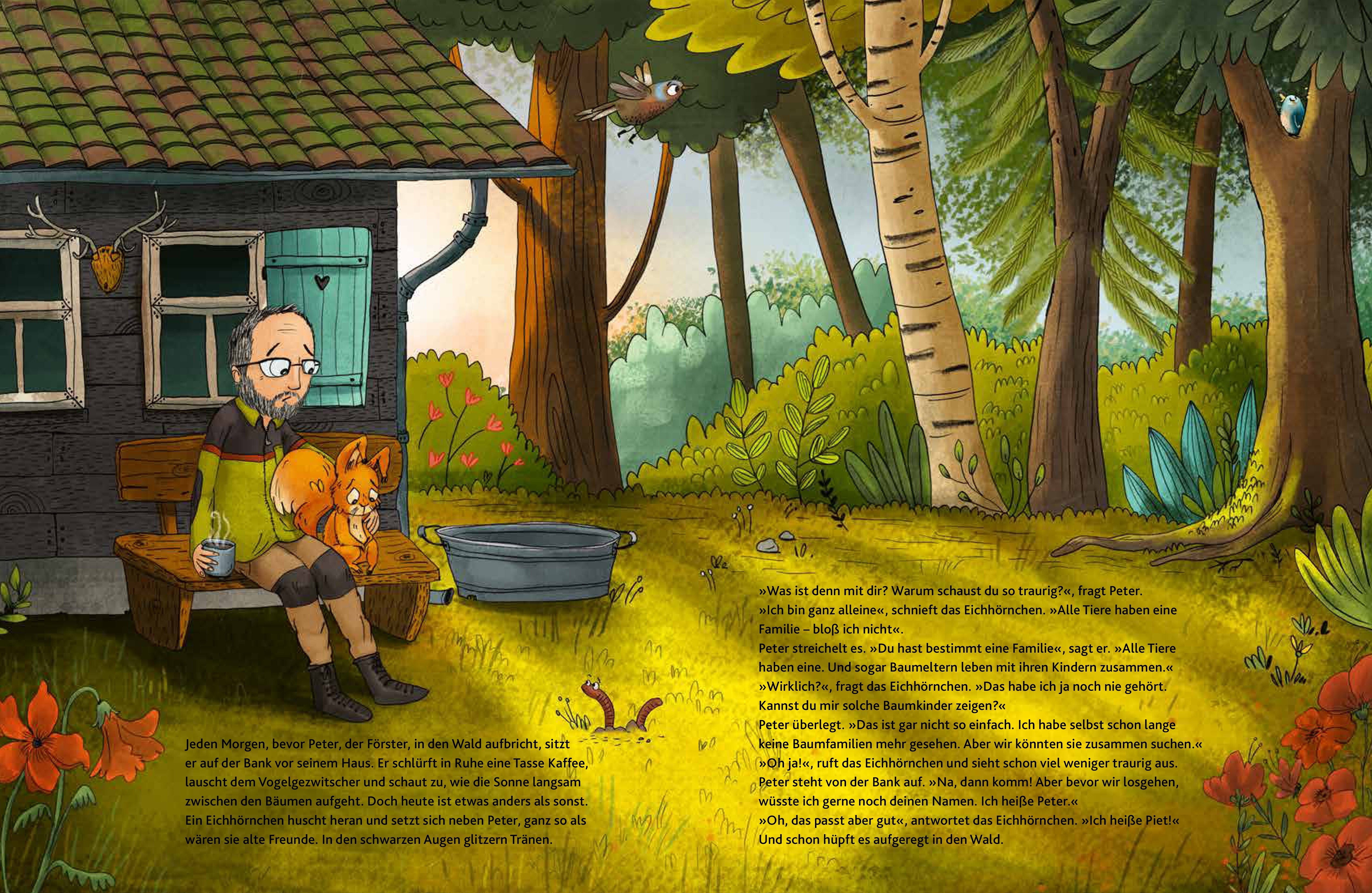 In "Weißt du, wo die Baumkinder sind?" begleiten die Leser das Eichhörnchen Piet auf einer spannenden Entdeckungsreise durch den Wald, angeleitet vom Förster Peter Wohlleben. Piet fühlt sich einsam, weil es glaubt, keine Familie zu haben. Um ihm zu helfen, fü...