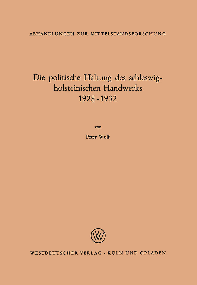 Die vorliegende Arbeit hat außer ihrem rein informativen Wert noch insofern eine sehr spezielle Bedeutung für die Mittelstandsforschung, als sie eine Reihe von Problemen aufweist, die nicht nur die politische Stellung gewisser mittelständischer Gruppen, sonder...