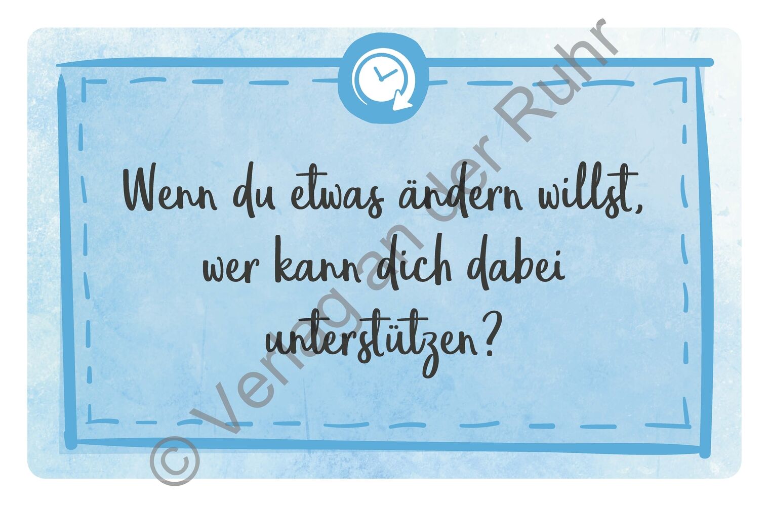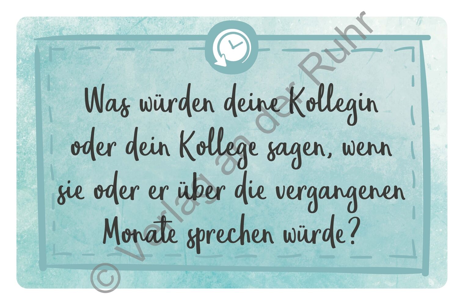 Impuls-Fragekarten zur Begleitung von Veränderungsprozessen für Leitungskräfte in Kita, Krippe und Ganztagsbetreuung +++ Welche Sorgen oder Ängste, die du noch vor einem Jahr hattest, konntest du loslassen? Welchen Sinn wird das, was du gerade tust, in einem ...