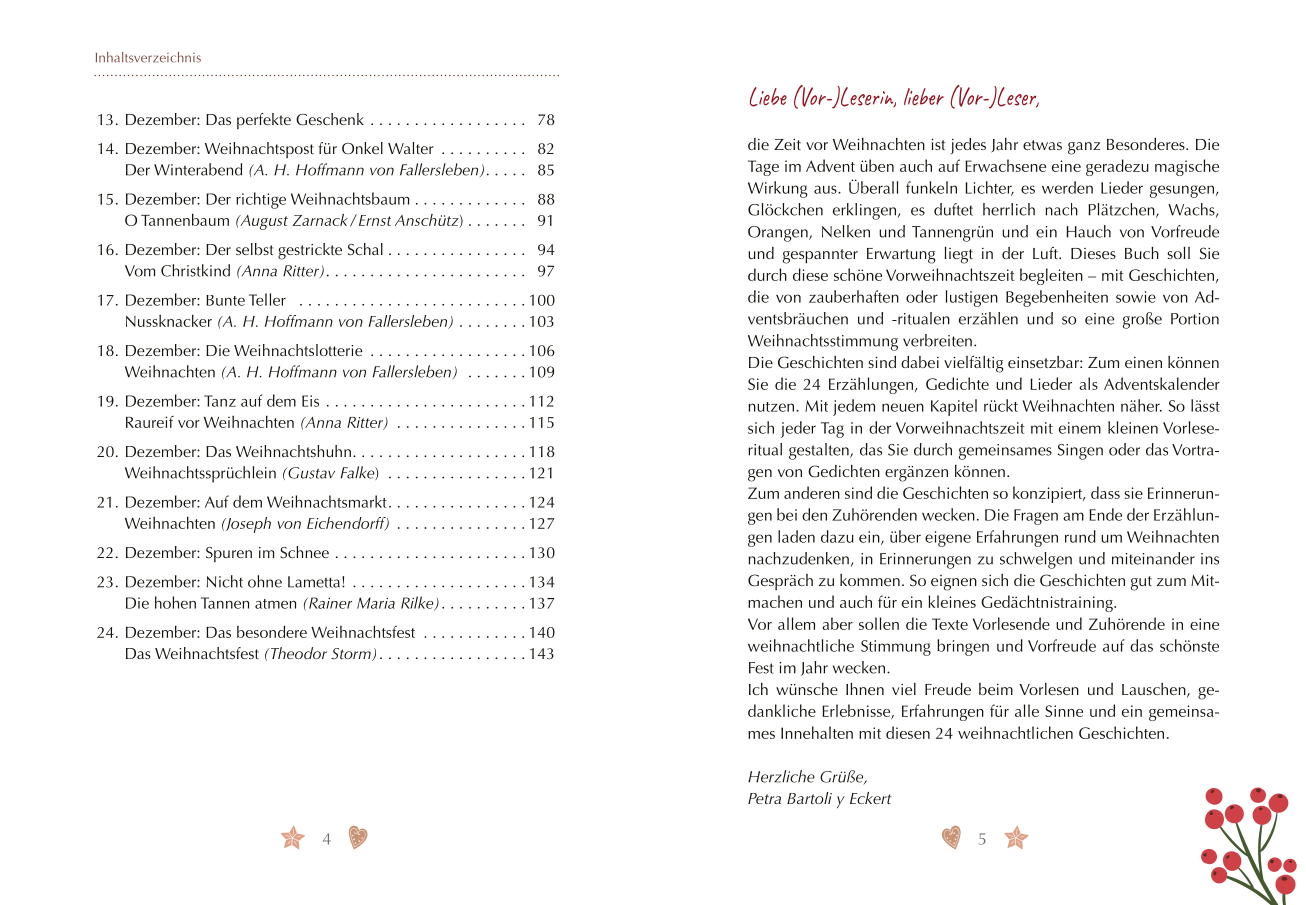 24 Vorlesegeschichten für die Weihnachtszeit: Das Vorlesebuch für ältere Menschen und Menschen mit Demenz. Regelmäßig lesbar als Adventskalender, zum Vorlesen und gemeinsamen Erinnern. Die Vorlesegeschichten sind so konzipiert, dass sie Erinnerungen bei den Zu...