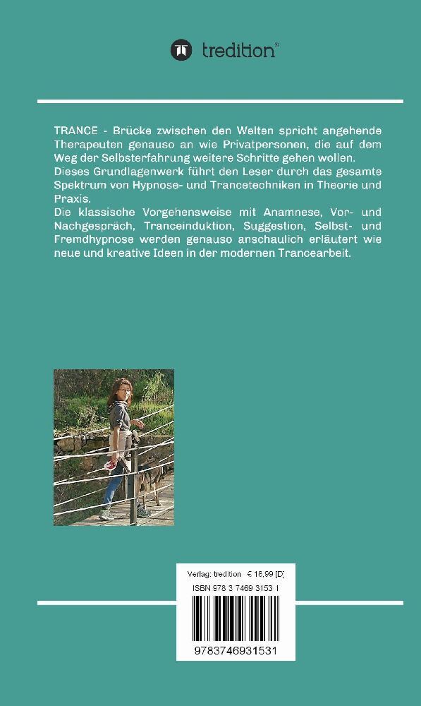 TRANCE - Brücke zwischen den Welten spricht angehende Therapeuten genauso an wie Privatpersonen, die auf dem Weg der Selbsterfahrung weitere Schritte gehen wollen. Dieses Grundlagenwerk führt den Leser durch das gesamte Spektrum von Hypnose- und Trancetechnike...