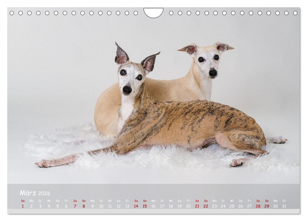 Whippets - Seelenhunde fürs Leben (Wandkalender 2026 DIN A4 quer), CALVENDO Monatskalender