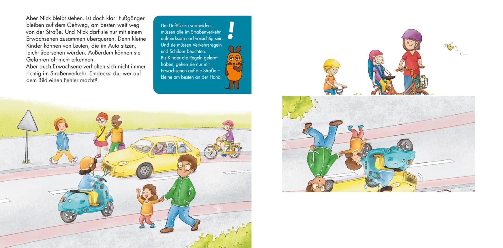 Darf man auf der Straße spielen? Wer hat Vorfahrt und wer muss warten? Wozu ist eine Ampel gut? Nick und Carlotta wollen Opa besuchen. Nicht nur auf dem Fußweg ist viel los. Auf ihrem Weg zu Opas Haus meistern die drei so einige spannende Verkehrssituationen....