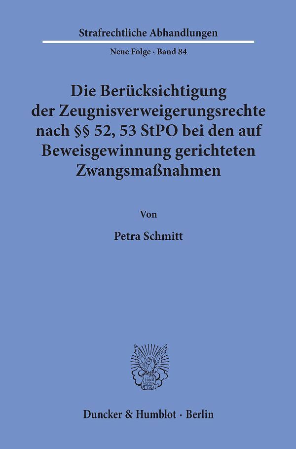 Die Berücksichtigung der Zeugnisverweigerungsrechte nach §§ 52, 53 StPO bei den auf Beweisgewinnung gerichteten Zwangsmaßnahmen.