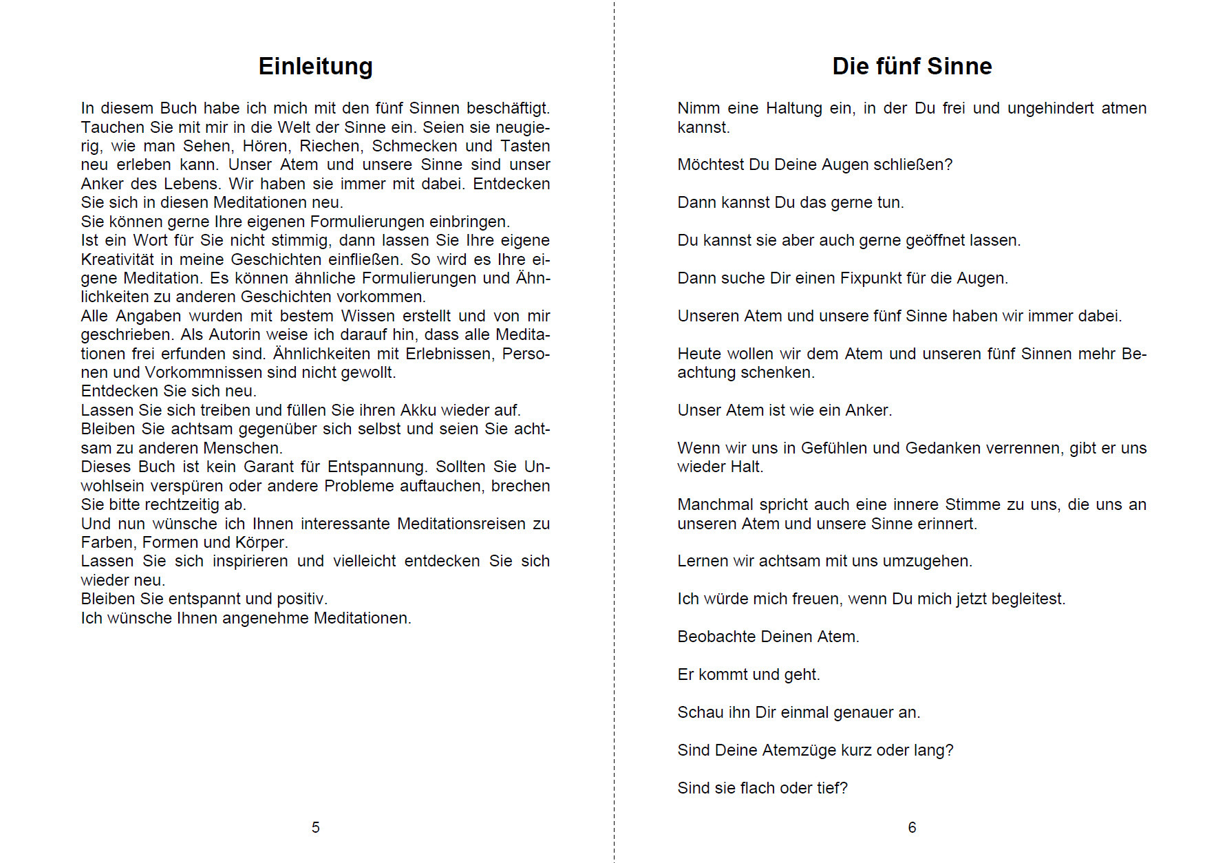 30 Meditationen zum Eintauchen in die Welt der Sinne. Meditiere zu den fünf Sinnen: Sehen, Hören, Riechen, Schmecken und Tasten. Finde darin Entspannung von Körper, Geist und Seele. Das Buchformat in DIN A5 ist handlich und kompakt, so dass es jederzeit mitgen...