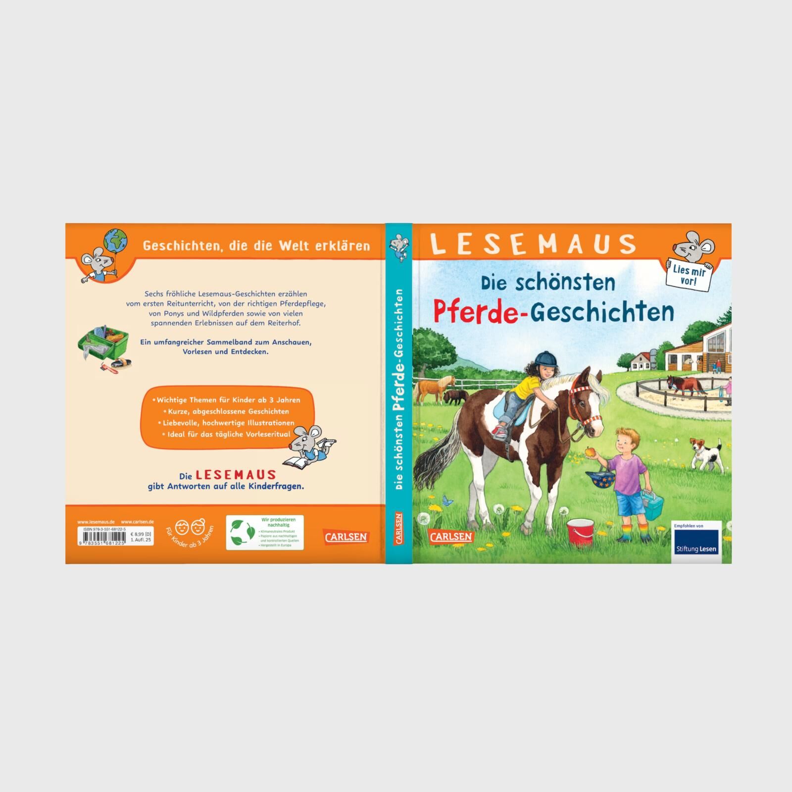 Ein toller Sammelband für kleine Pferdefans! Sechs fröhliche Bilderbuchgeschichten erzählen von wilden Pferden und süßen Ponys, vom ersten Reitunterricht, von der richtigen Pferdepflege und von vielen spannenden Erlebnissen auf dem Reiterhof. Perfekt zum geme...