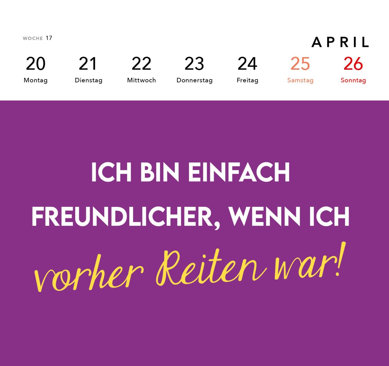 Zuckerbrot und Postkarten! Einmal Pferdemädchen, immer Pferdemädchen! Dieser Postkartenkalender im hochwertigen Ringbuch-Aufsteller enthält 53 Postkarten mit lustigen und tiefsinnigen Sprüchen für selbstbewusste Pferdenärrinnen. mit Spiralbindung zum Hinhänge...