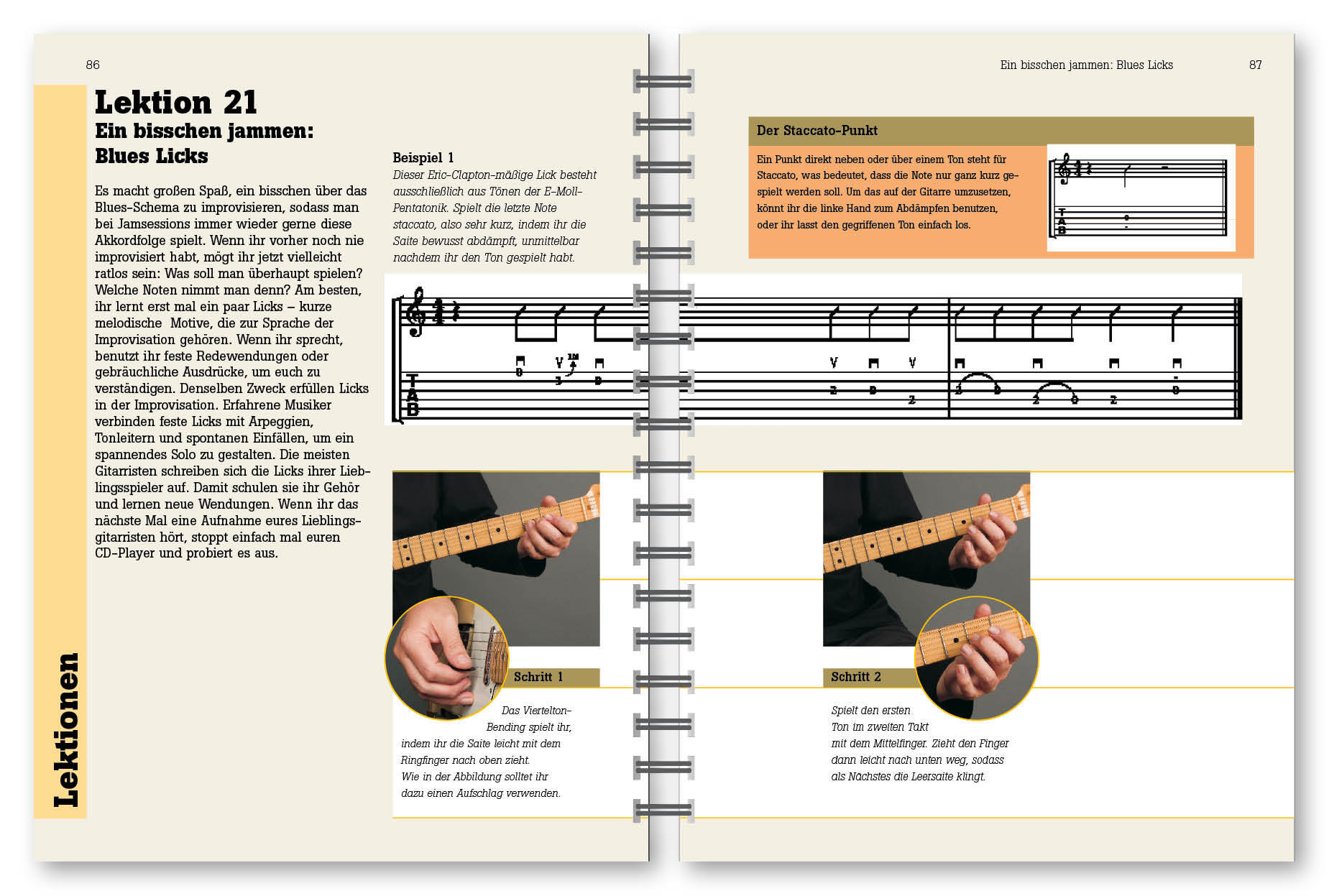 Vom Stimmen der Gitarre und der richtigen Haltung bis zu Akkorden, dem Fingerpicking, Tonleitern und den Grundlagen der Harmonielehre hier wird alles behandelt, was für den Gitarristen wichtig ist. Einfache Anschlagsmuster und Pentatonik-Riffs werden ebenso be...