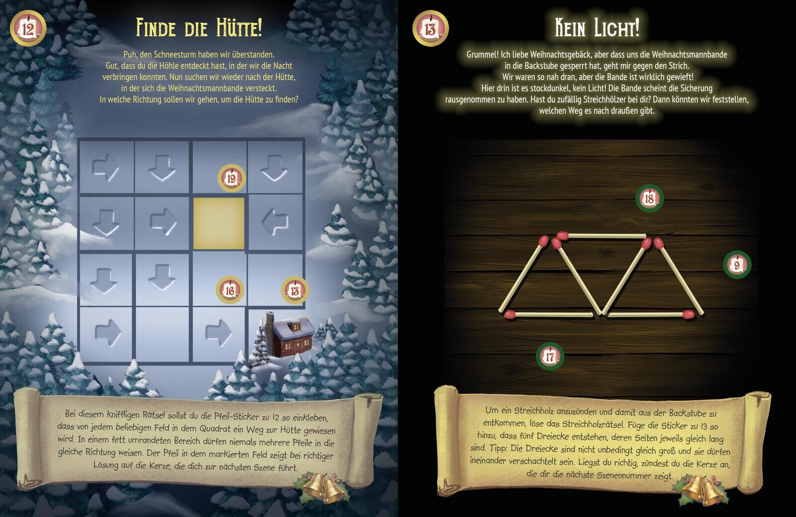 Für alle Escape-Rätsel- und Stickerfans ab 8 Jahren! Erfülle täglich deine Herausforderung und überstehe mithilfe der spannenden Rätsel und Aufgaben heil die gefährliche Mission! Endlich Weihnachtszeit! Aber eine Bande von kriminellen Weihnachtsmännern treibt...
