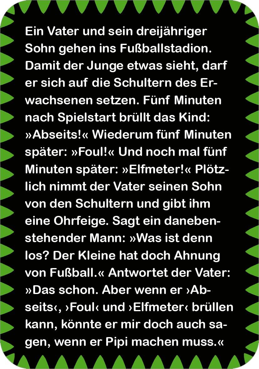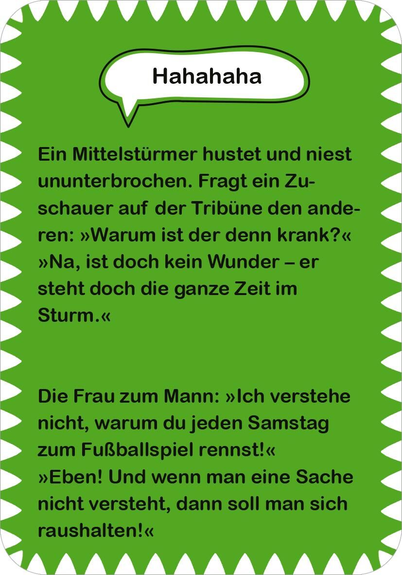 Die besten Kinderwitze Einfach nur lustig! Die Kartenbox im praktischen Mitnahmeformat passt in jede Hosentasche oder den Schulranzen. Mit über 150 Witzen aus der Fußball-Welt sind gute Laune und eine Menge Spaß garantiert! Mit dieser einmaligen Witze-Sammlun...