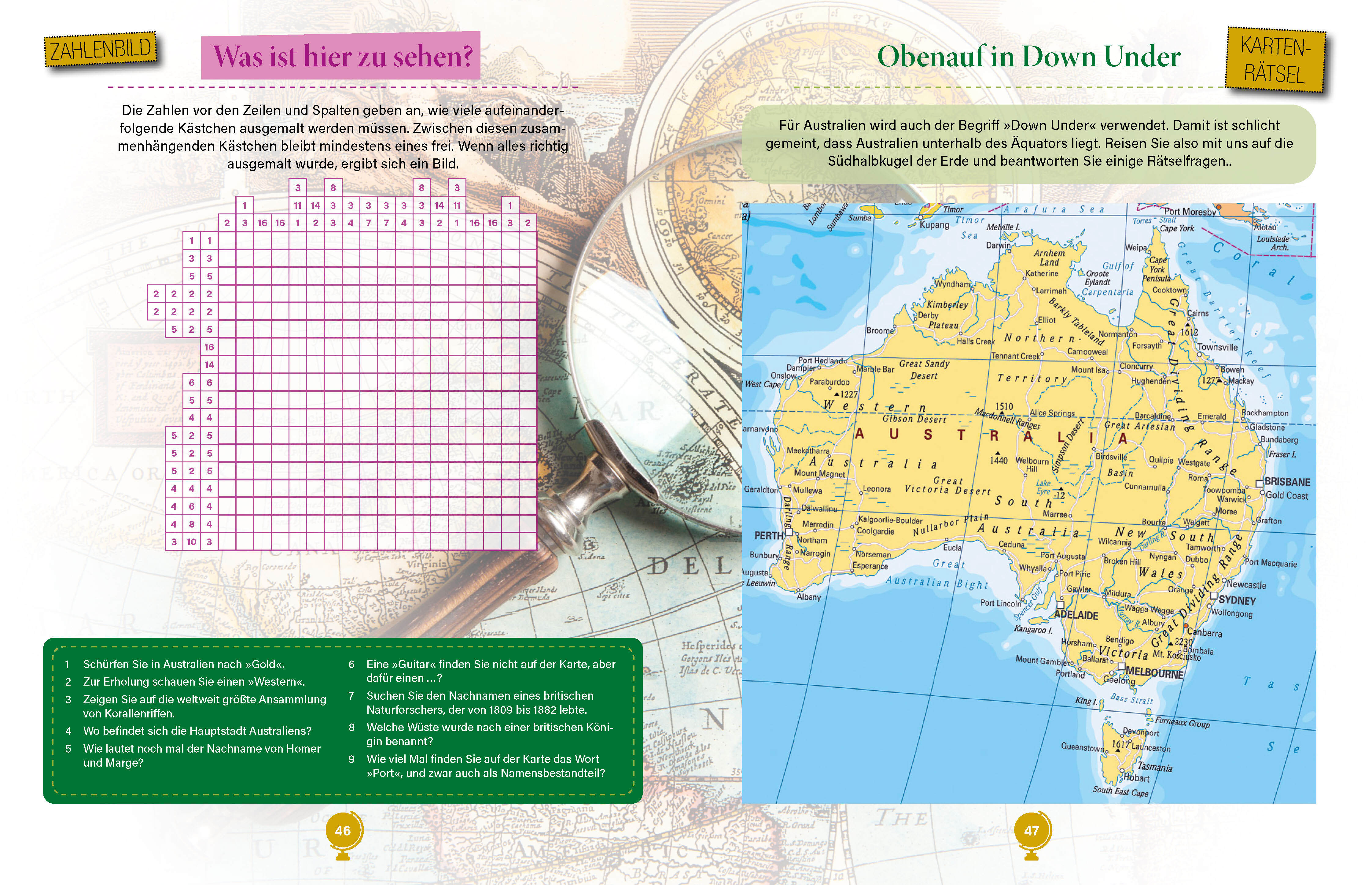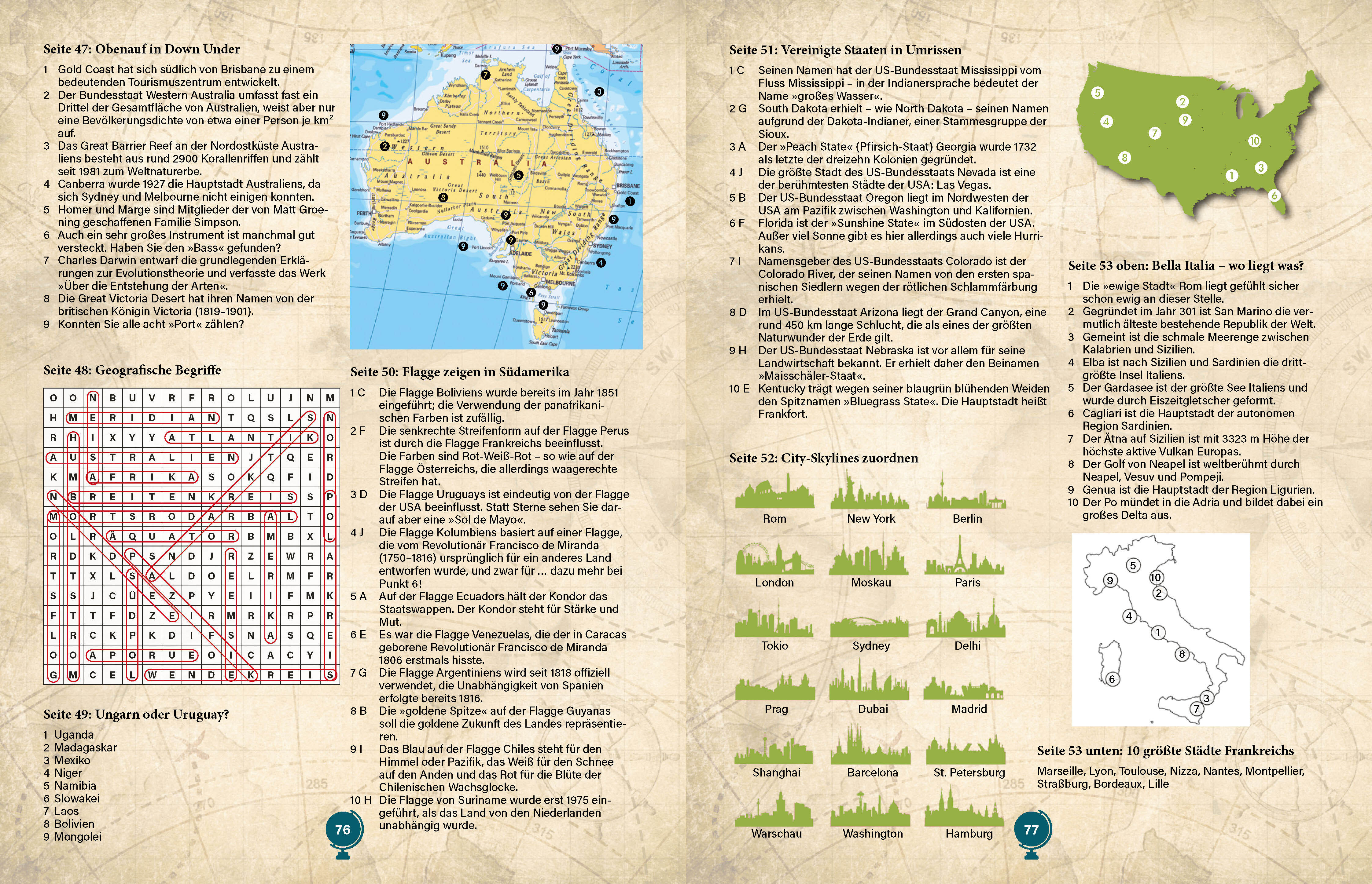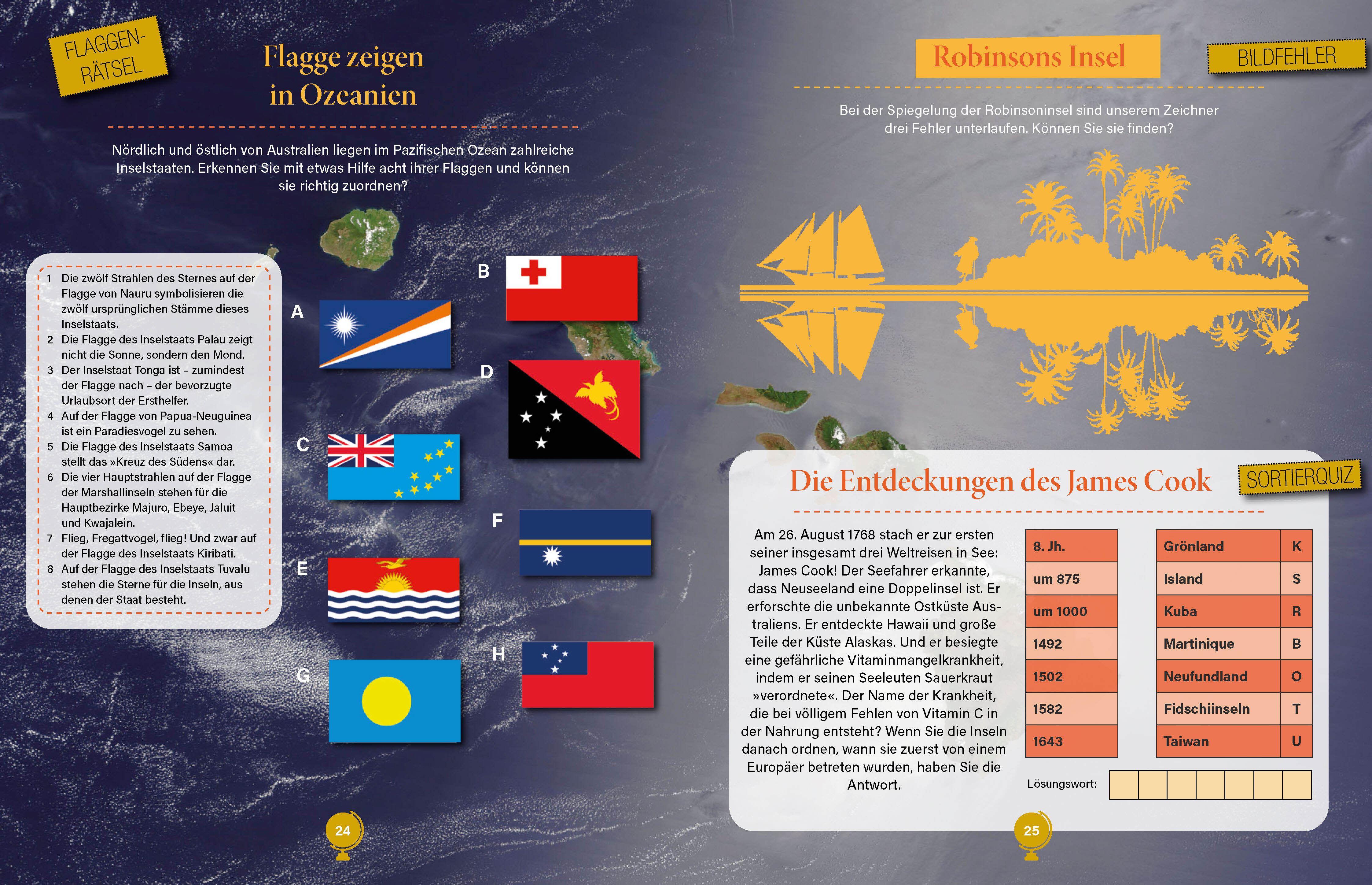 In 80 Rätseln um die Welt • Rätseln einmal anders - Auf abwechslungsreicher Entdeckertour rund um die Welt • Bunter Rätsel-Mix - 80 Rätsel für alle Geografie-Fans und Karten-Liebhaber • Rätselspaß mit Ländern, Karten & Geografie-Begriffen -...