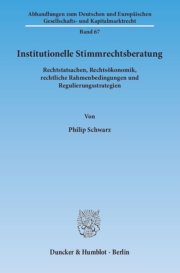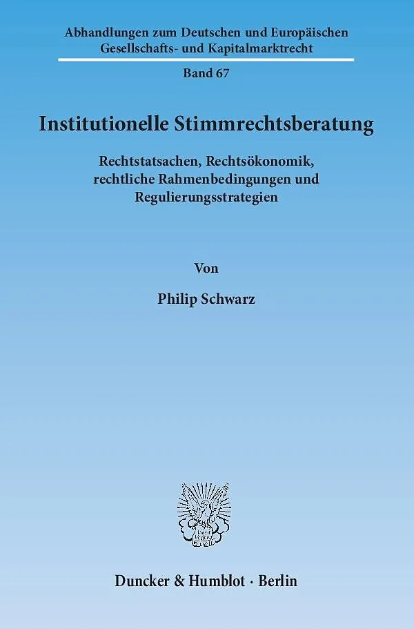 Viele institutionelle Anleger beziehen heute die Abstimmungsempfehlungen professioneller Stimmrechtsberater (proxy advisors) und üben ihre Stimmrechte entsprechend dieser Empfehlungen aus, ohne deren Inhalt kritisch zu hinterfragen. Aus gesellschaftsrechtliche...