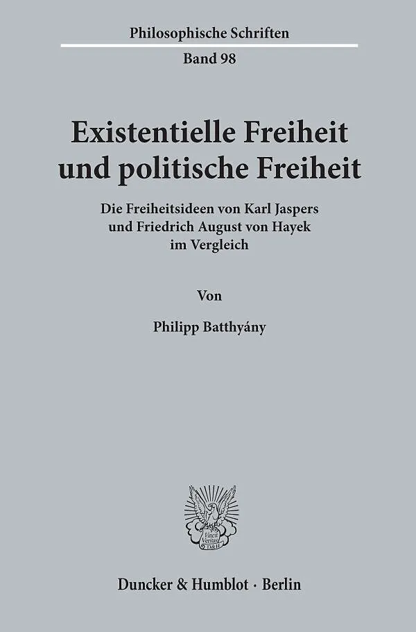 Ziel dieses Buches ist ein zusammenführender Vergleich der Freiheitsbegriffe der Existenzphilosophie und des Liberalismus. Hierzu werden die Werke zweier der profiliertesten Denker der jeweiligen Freiheitsauffassung im 20. Jahrhundert, Karl Jaspers und Friedrich August von Hayek, ausführlich dargelegt und ihre Freiheitsideen von deren Grundlagen her sowohl eigenständig als auch aneinander entwickelt. Im politischen Schlussteil wird die Möglichkeit einer Freiheitskonzeption aufgezeigt, die beide Ansätze verbindet. Wenngleich bei Jaspers durch einen expliziten Bezug auf Hayek in einem seiner Bücher selbst schon angelegt, ist ein solcher Vergleich in der Literatur bislang nicht vorgenommen worden. In vielerlei Hinsicht ideengeschichtlich und systematisch wird mit dieser Arbeit folglich Neuland betreten und eröffnen sich in Forschung und Lehre neue philosophische Diskurse und Deutungsweisen beider Werke.