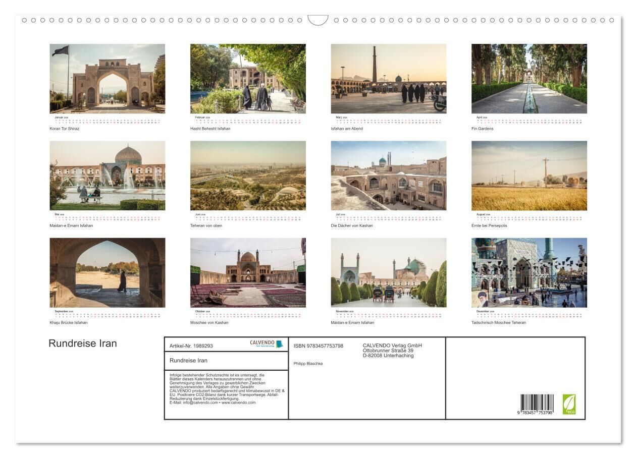 Rundreise Iran (Wandkalender 2026 DIN A2 quer), CALVENDO Monatskalender