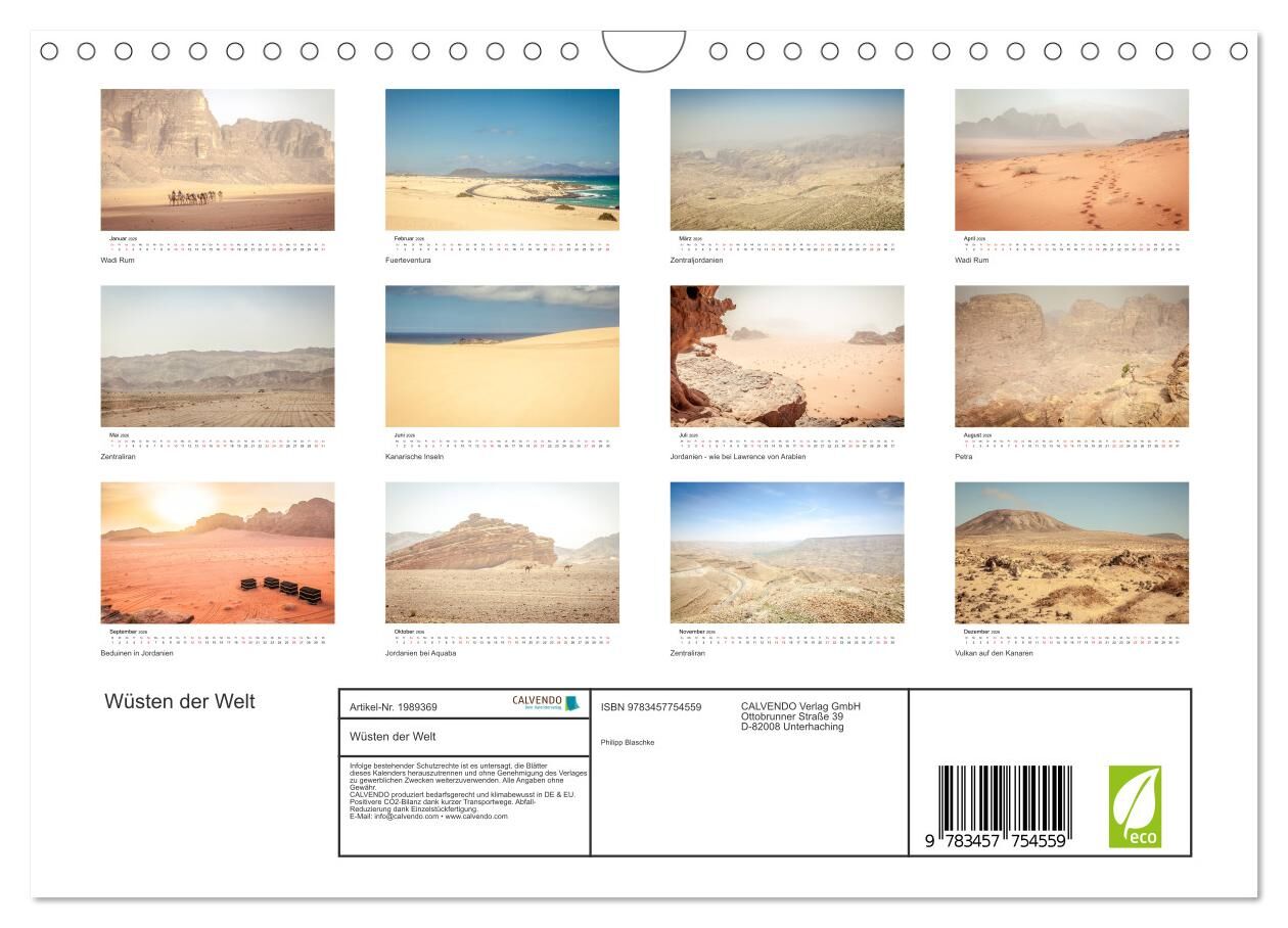 Ein besonderer und einzigartiger Querschnitt an die wohl mit unwirtlichsten Orte der Welt: Wüsten. Manche sehr abgelegen und nahezu unerreichbar, gibt es andere, die sogar durch Straßen erschlossen sind oder Kinofilmen als Kulisse dienen. Dieser Kalendner gibt...