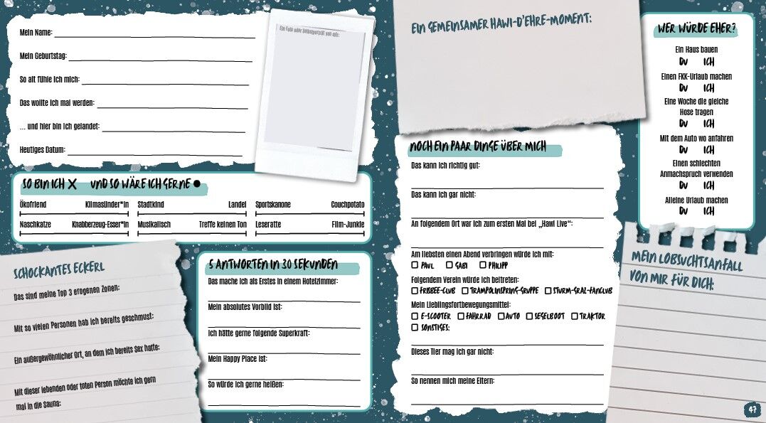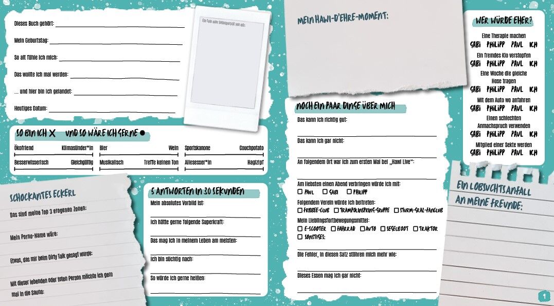 Das Freundebuch für Erwachsene zum Podcast Hawi D'Ehre von Paul Pizzera, Gabi Hiller und Philipp Hansa. Paul Pizzera, Gabi Hiller & Philipp Hansa betreiben zusammen den mittlerweile schon legendären Podcast Hawi D'Ehre: Seit Februar 2020 überall, wo es Po...