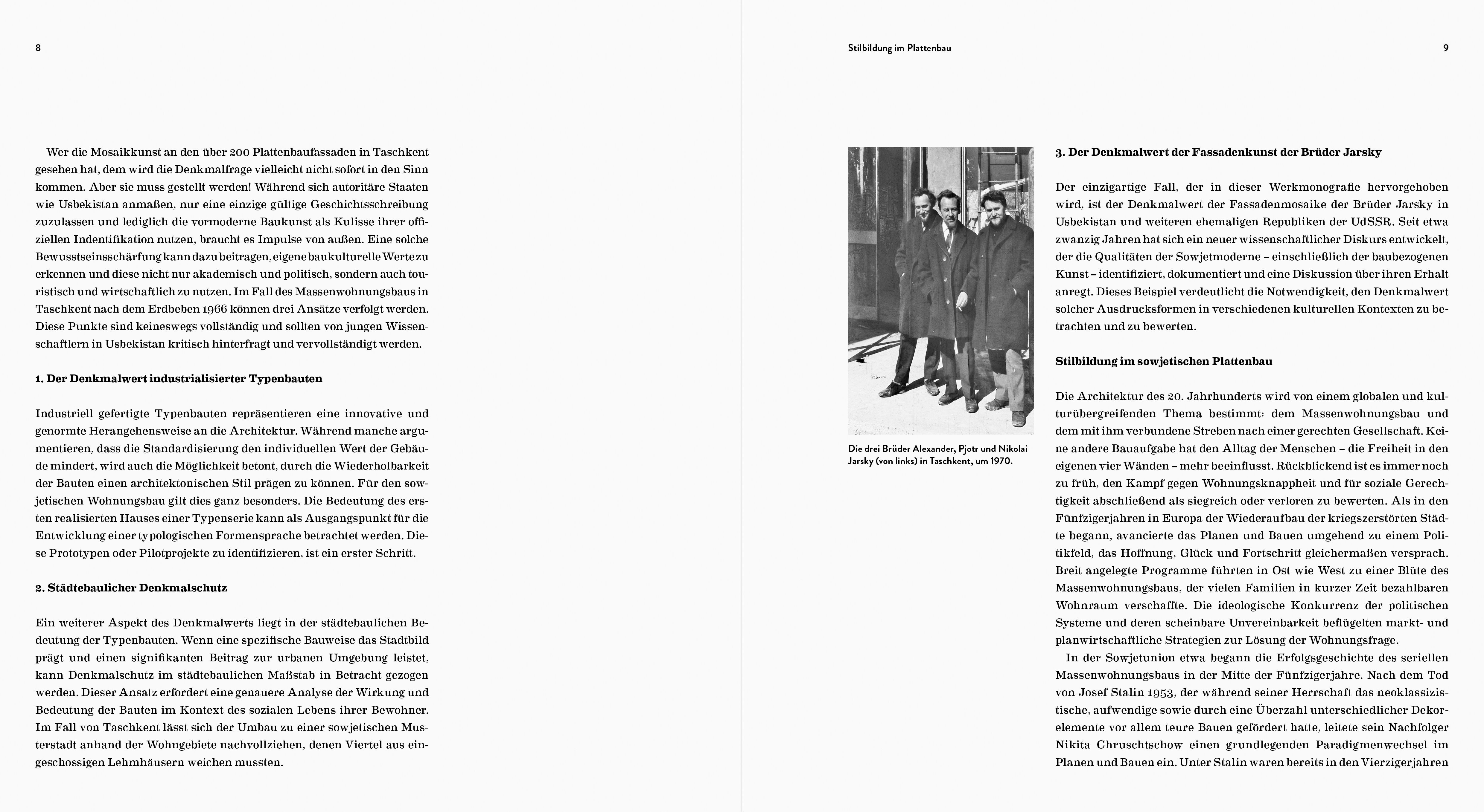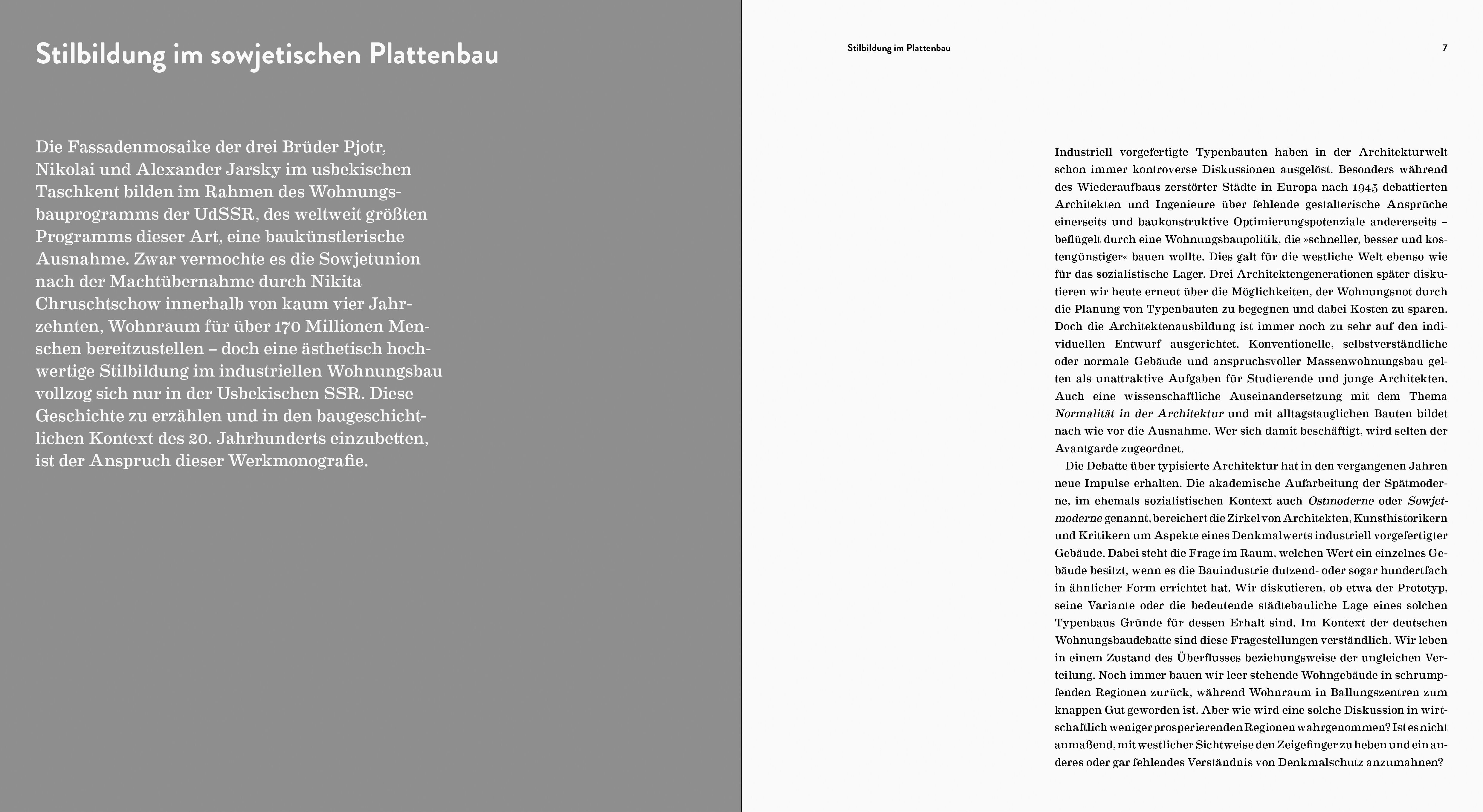 Die Taschkenter Plattenbauten mit Fassaden von Pjotr, Nikolai und Alexander Jarsky stellen ein Bindeglied zwischen Kunst und Architektur dar. Zugleich wird in den floralen Ornamenten und programmatischen Motiven das Erbe der islamischen Architektur mit dem Fun...