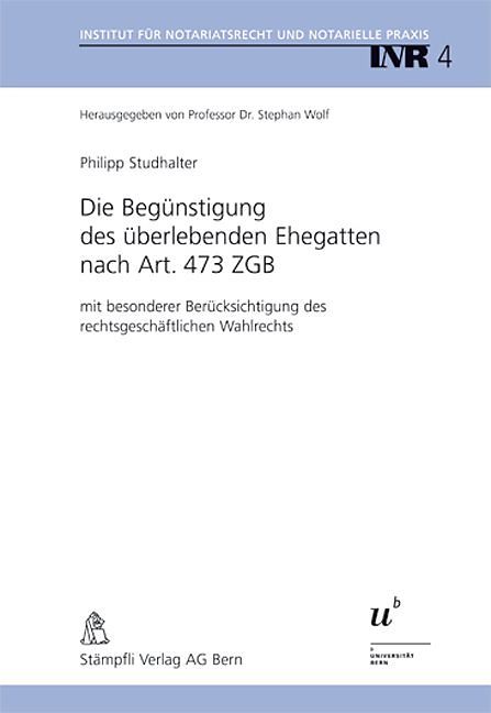 Ziel der vorliegenden Monographie ist die Erarbeitung der Bedeutung und Funktion des Art. 473 ZGB, wobei das in diesem Zusammenhang regelmässig zur Anwendung kommende rechtsgeschäftliche Wahlrecht im Zentrum der Betrachtung steht. Um möglichst umfassende und a...
