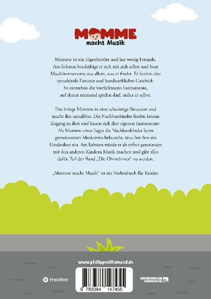 Momme ist ein Eigenbrötler und hat wenig Freunde. Am liebsten beschäftigt er sich mit sich selbst und baut Musikinstrumente aus allem, was er findet. Er besitzt eine sprudelnde Fantasie und handwerkliches Geschick. So entstehen die verrücktesten Instrumente, a...
