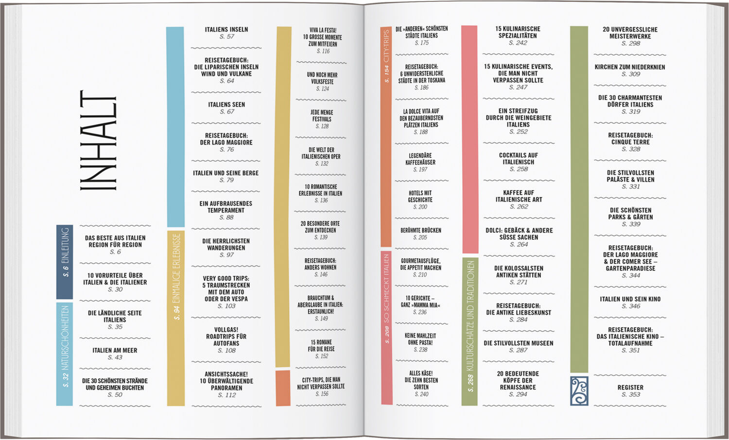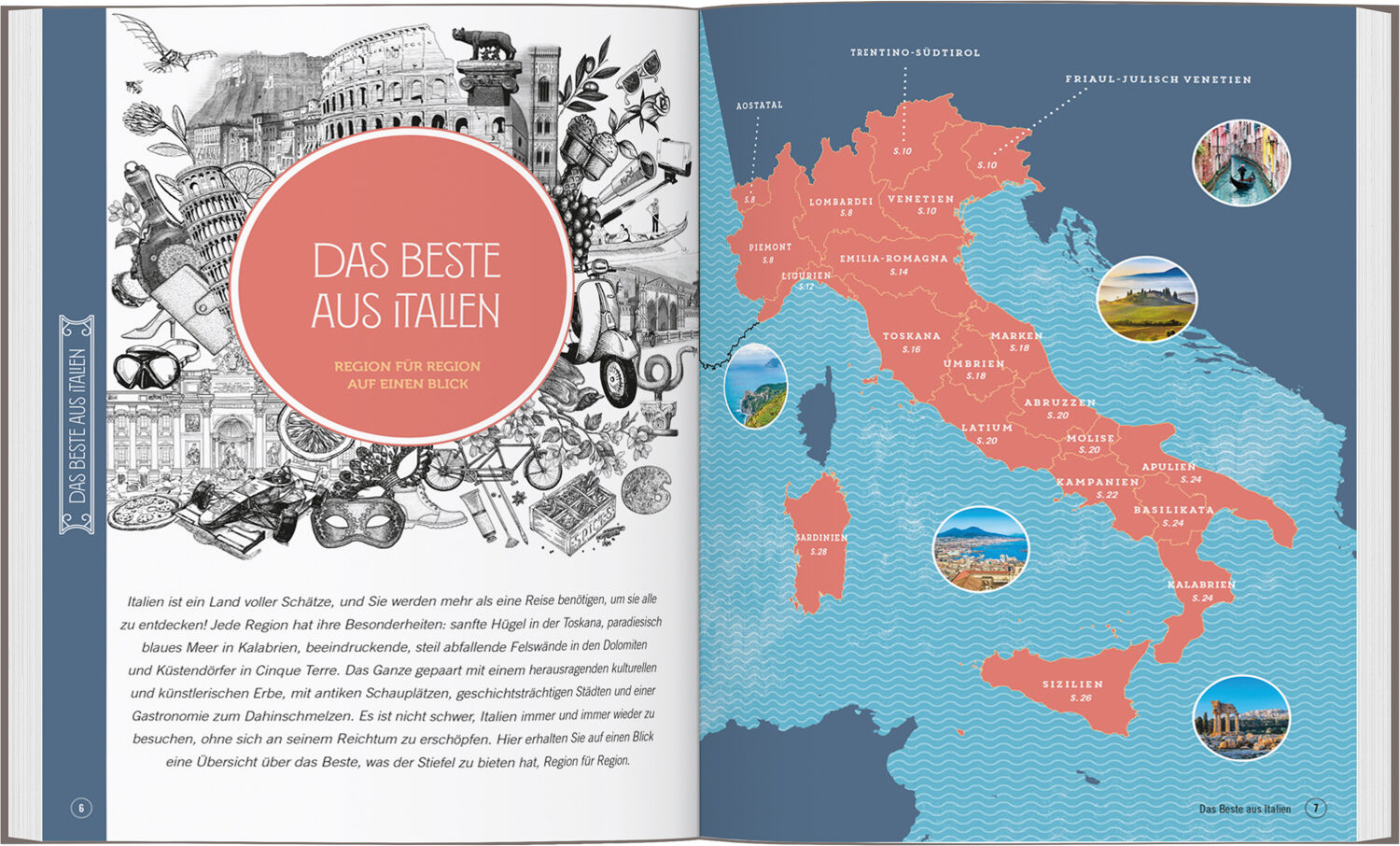 MEHR ITALIEN GEHT NICHT: Diese zauberhaft illustrierte Inspirationssammlung weist Sonnenhungrigen und Wassersportlern den Weg zu Italiens schönsten Seen und versteckten Stränden, Kulturfreunde finden zu römischen Relikten, zu den großen Museen oder in die bed...