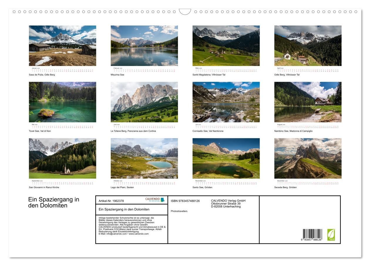 Ein Spaziergang in den Dolomiten (Wandkalender 2026 DIN A2 quer), CALVENDO Monatskalender
