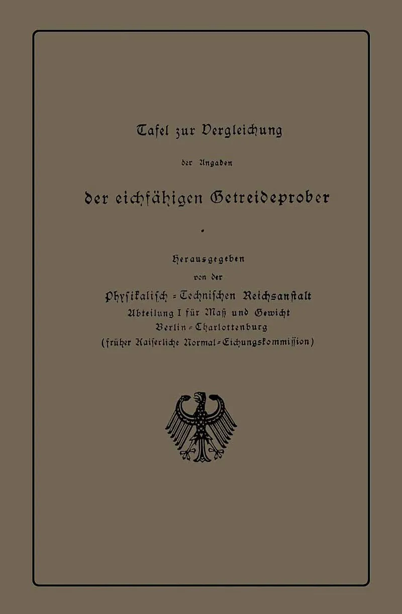 Tafel zur Vergleichung der Angaben der eichfähigen Getreideprober miteinander und mit anderen Qualitätsangaben von Getreide