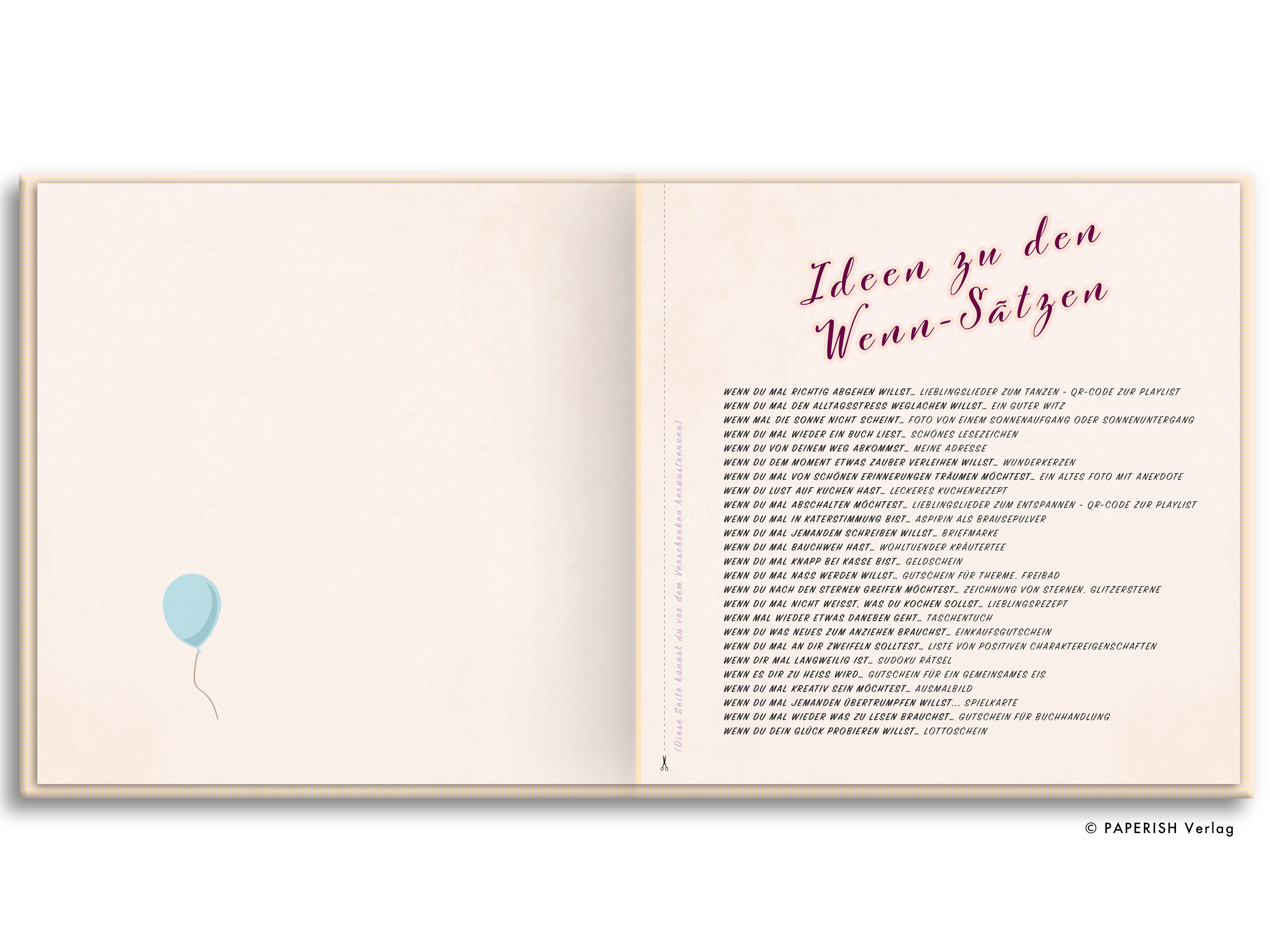 Wenn du deinem Lieblingsmenschen eine besondere Freude machen möchtest, ist dieses Buch genau das ideale Geschenk für dich! Zeige mit deiner Kreativität, wie sehr dir der Mensch am Herzen liegt. Das PAPERISH Wenn-Buch ist ideal als Geburtstagsgeschenk, Dankes...