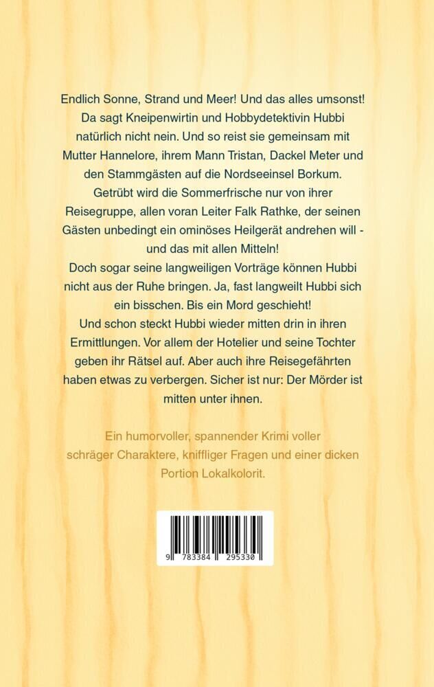 Endlich Sonne, Strand und Meer! Und das alles umsonst! Da sagt Kneipenwirtin und Hobbydetektivin Hubbi natürlich nicht nein. Und so reist sie gemeinsam mit Mutter Hannelore, ihrem Mann Tristan, Dackel Meter und den Stammgästen auf die Nordseeinsel Borkum. Getr...
