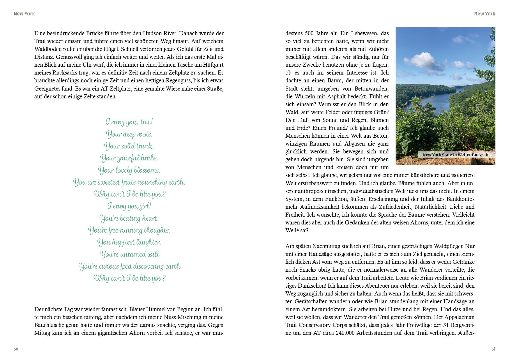 Der Appalachian Trail ist ein etwa 2200 Meilen langer Fernwanderweg im Osten der USA. Er führt durch 14 Bundesstaaten von den Laubwäldern Georgias bis hinauf in die Nadelwälder Maines. Kennengelernt haben sich Pia und der Trail 2018 in ihrer Summer Break am Co...