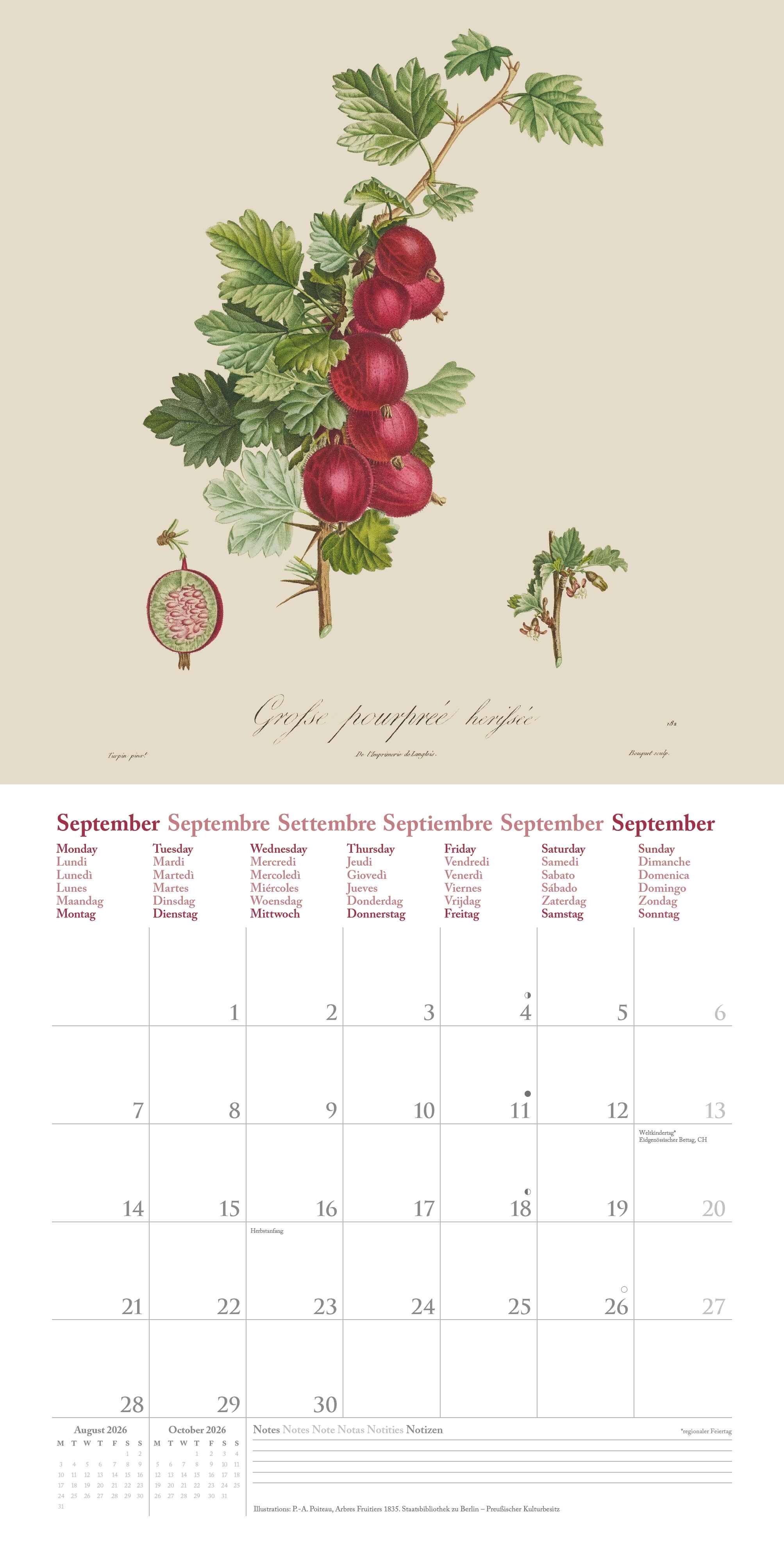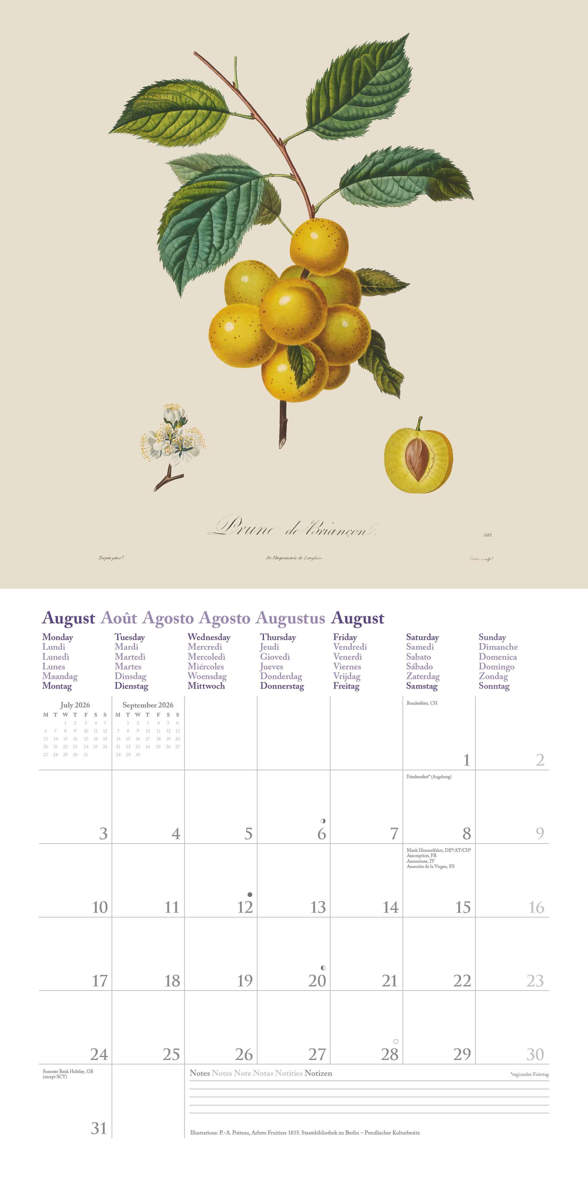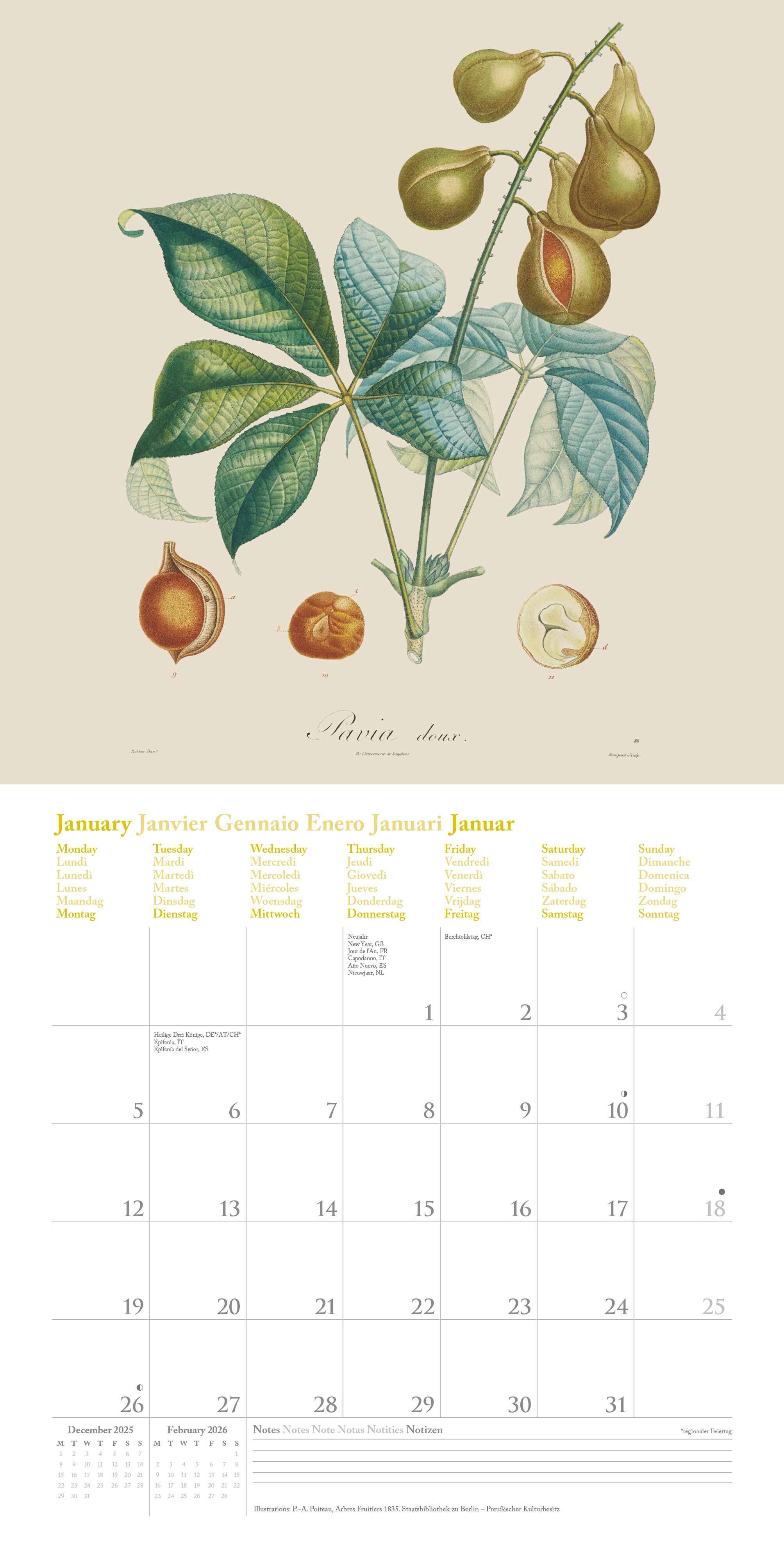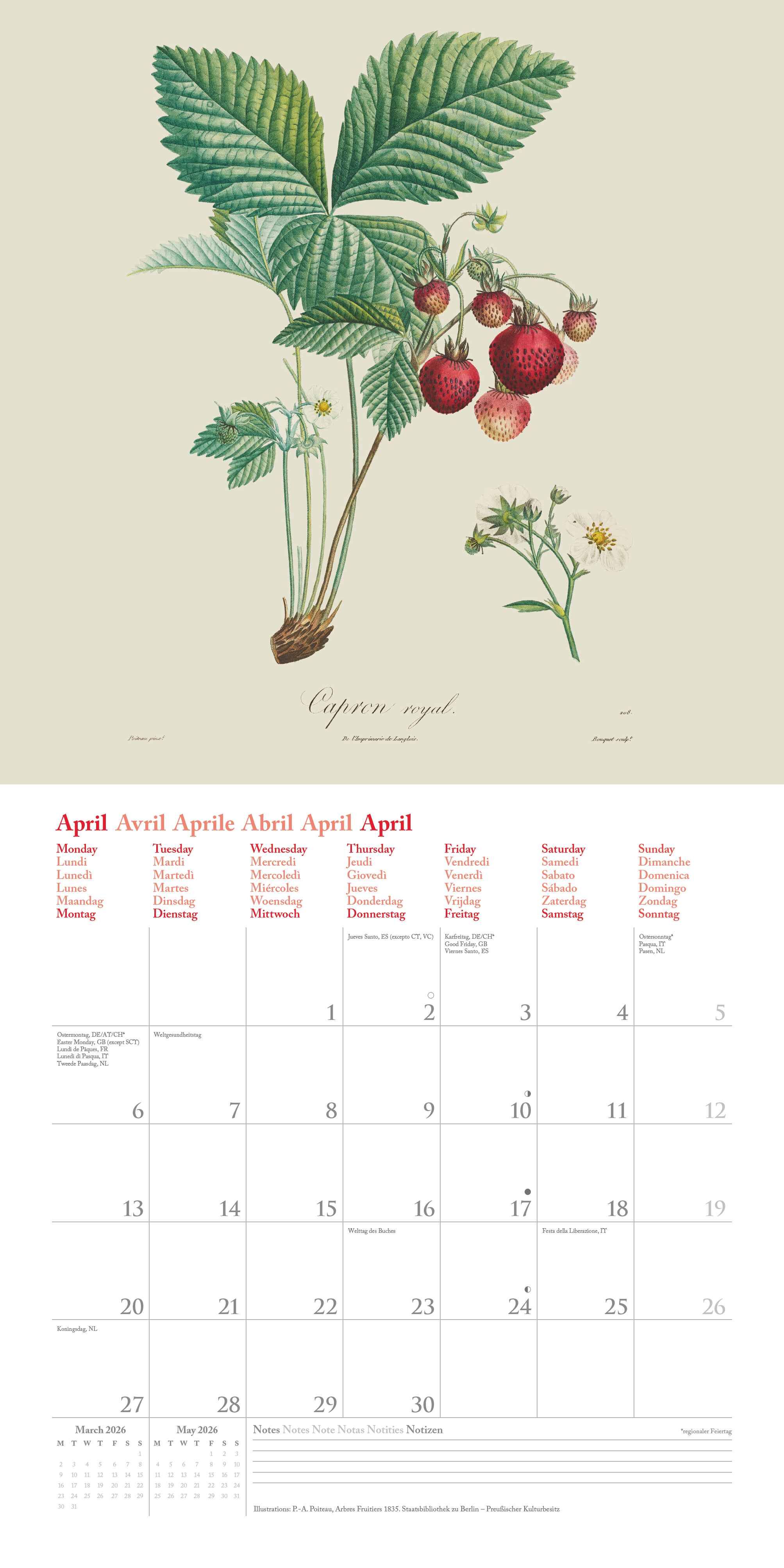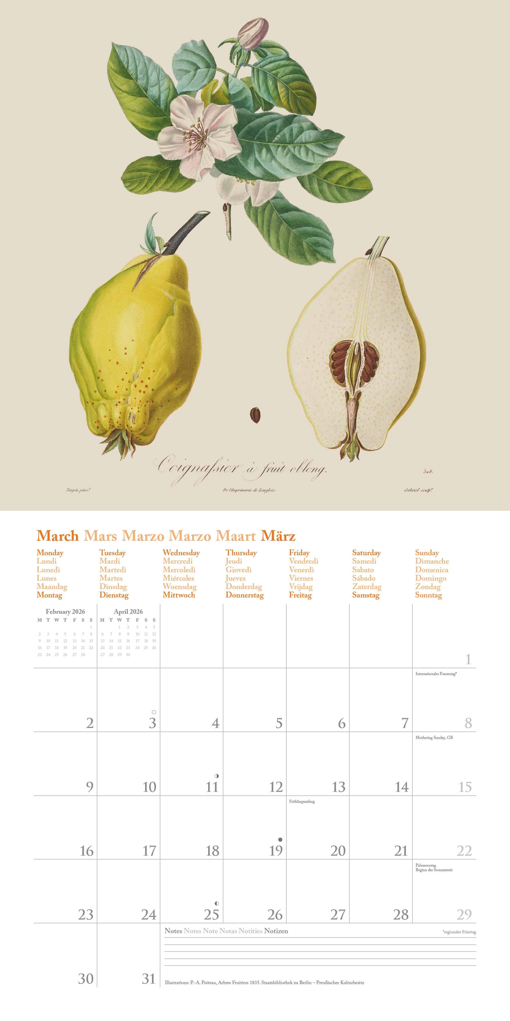 Ein dekorativer Blickfang mit Retro-Charme: Der Fruits 2026 Kalender zeigt prachtvolle, historische Abbildungen von Pierre Antoine Poiteau aus dem 19. Jahrhundert zeitlos schön und ideal für Küche oder Esszimmer. Highlights: 12 farbige Illustrationen alter Ob...