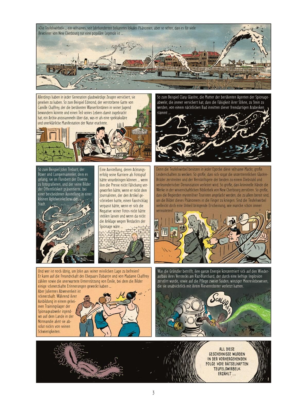 Was hat es mit dem mysteriösen Wasserphänomen auf sich, das Cherbourg in Atem hält? Gibt es einen Zusammenhang zwischen den Teufelswirbeln und den Kräften der Glacère-Zwillinge? Das Künstlerduo Reutimann und Gabus schafft mit New Cherbourg eine Parallelwelt. ...