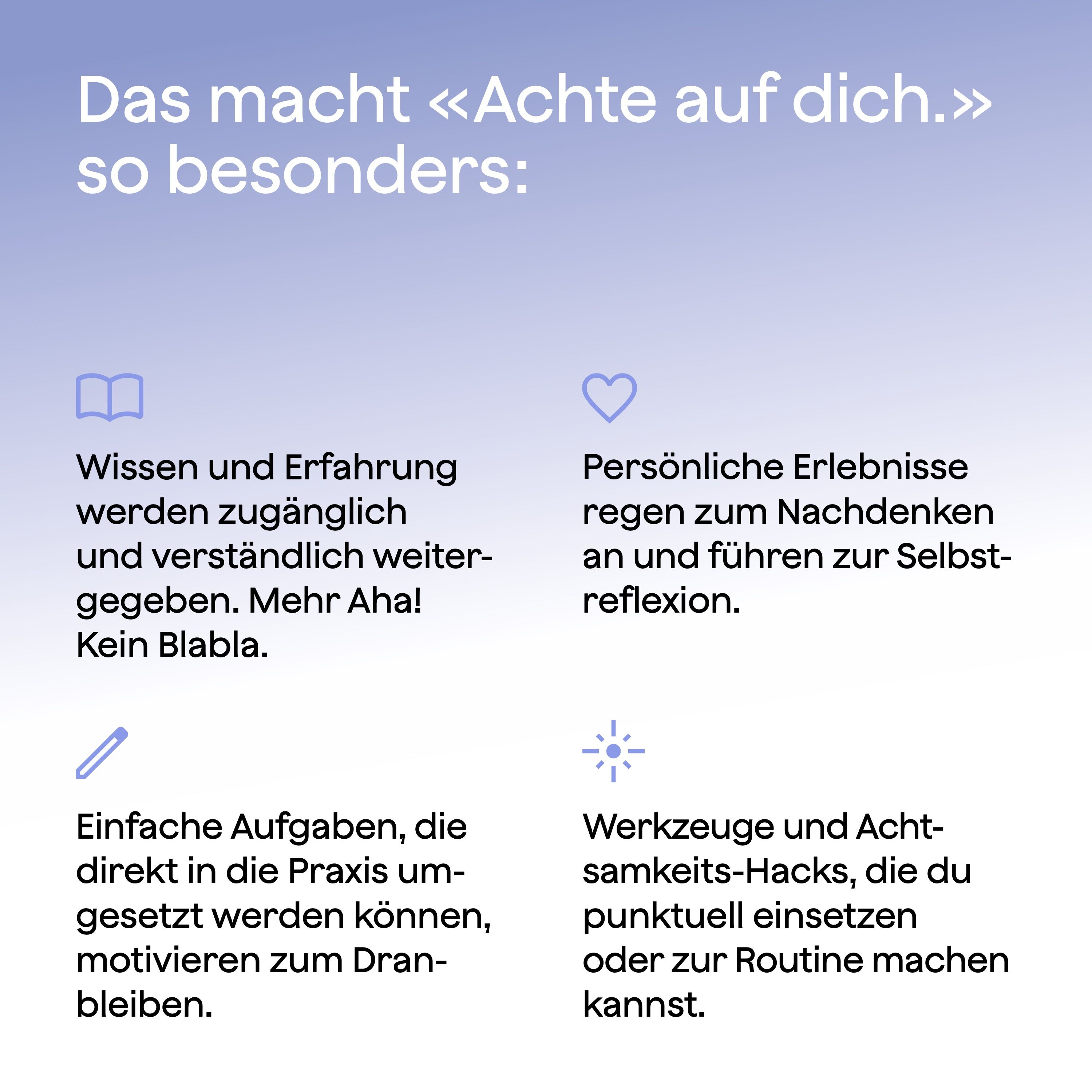 Schweizer Bestseller! Achte auf dich. Dein Workbook für mehr Achtsamkeit, Bewusstsein und Gelassenheit Wir leben in einer rasenden Zeit, in der uns das konstante Rauschen des Alltags überfordern kann. Stress und Unsicherheit hindern uns daran, innezuhalten, na...