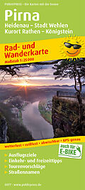 Die sächsische Stadt Pirna, zwischen Dresden und der Sächsischen Schweiz gelegen, steht im Mittelpunkt der Karte. Die Stadt an der Elbe ist ein idealer Ausgangspunkt für Aktivurlauber, die die Region erkunden möchten, führen doch viele Rad- und Wanderwege durc...