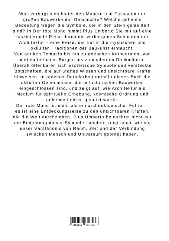 Was verbirgt sich hinter den Mauern und Fassaden der großen Bauwerke der Geschichte? Welche geheime Bedeutung tragen die Symbole, die in den Stein gemeißelt sind? In Der rote Mond nimmt Pius Umberto Sie mit auf eine faszinierende Reise durch die verborgenen Sc...