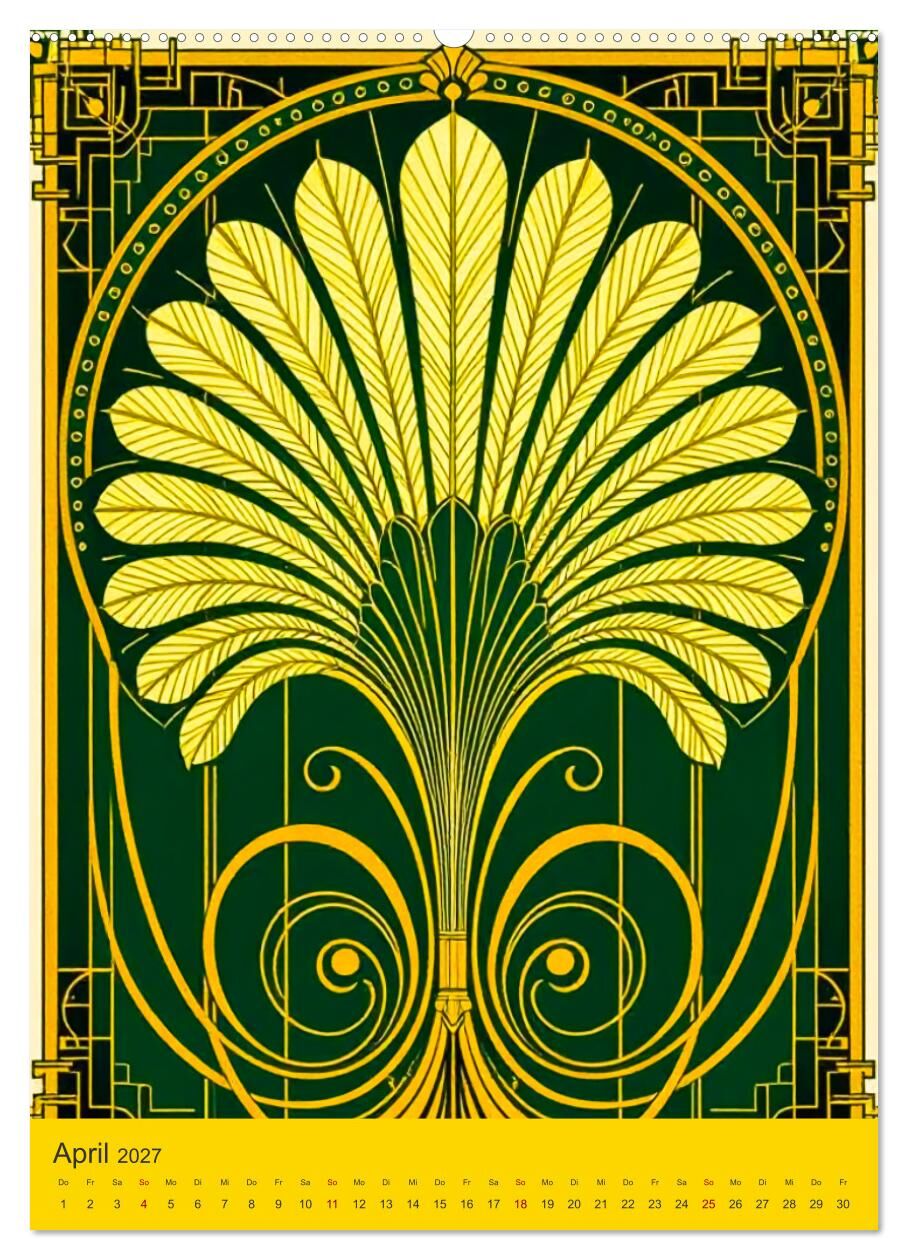 Dieser Art-Deco KI-Kalender entführt in die glamouröse Welt der 1920er und 1930er Jahre. Elegante geometrische Formen, goldene Akzente und sinnlich-stilvolle Motive vereinen Luxus, Design und Zeitgeist zu einem ästhetischen Gesamtwerk. Ideal als hochwertiger W...