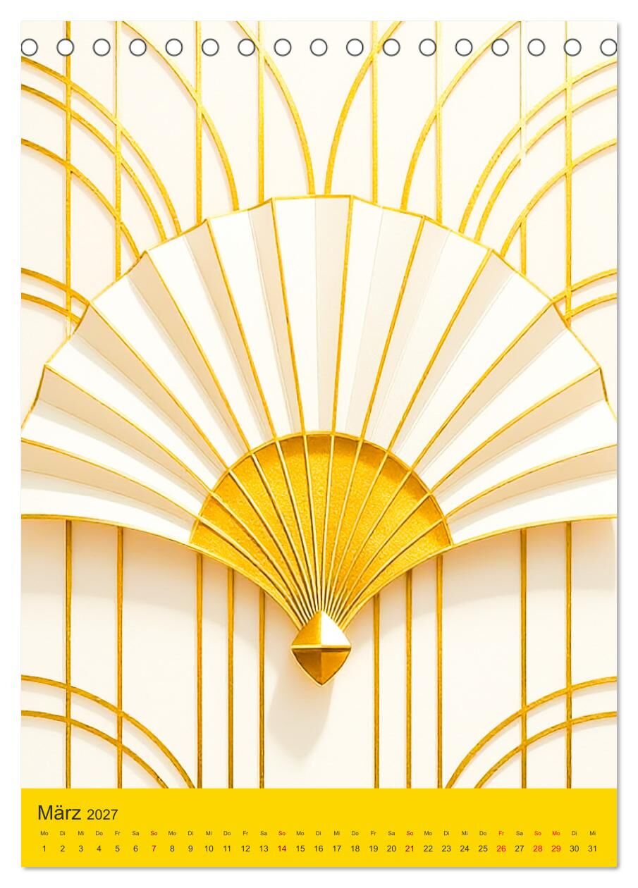Dieser Art-Deco KI-Kalender entführt in die glamouröse Welt der 1920er und 1930er Jahre. Elegante geometrische Formen, goldene Akzente und sinnlich-stilvolle Motive vereinen Luxus, Design und Zeitgeist zu einem ästhetischen Gesamtwerk. Ideal als hochwertiger W...