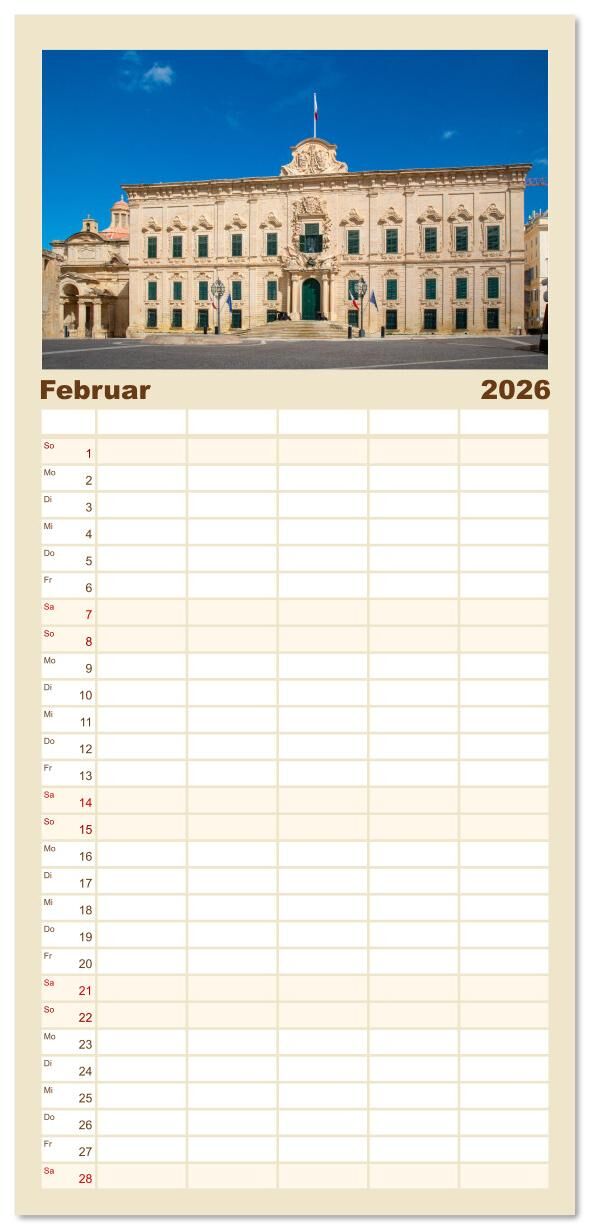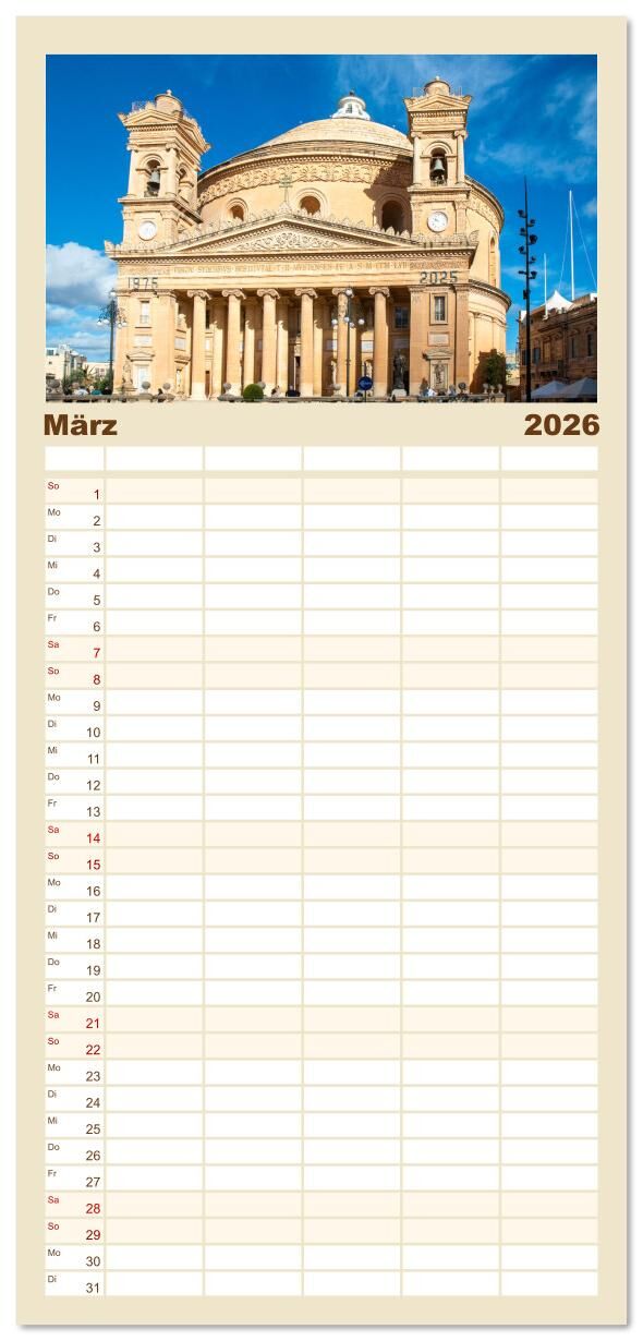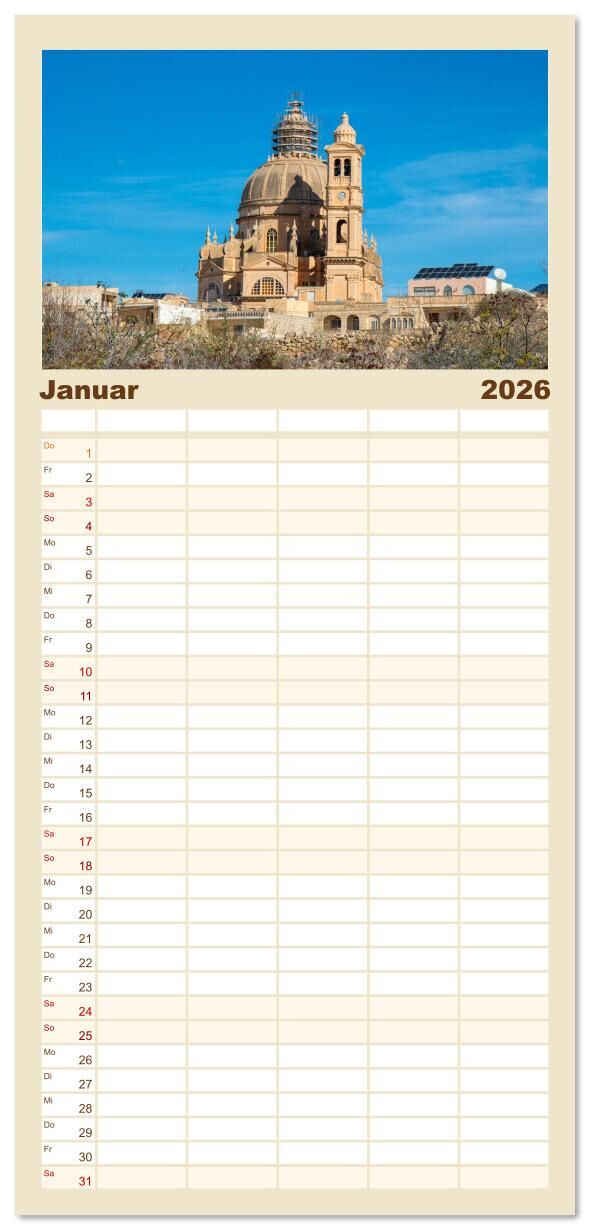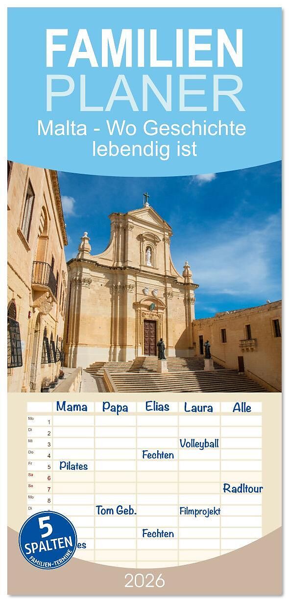 Familienplaner 2026 - Malta - Wo Geschichte lebendig ist mit 5 Spalten (Wandkalender, 21 x 45 cm) CALVENDO