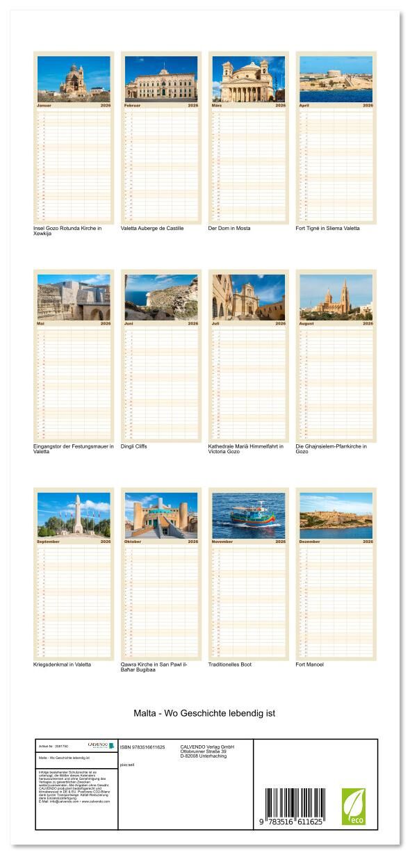 Dieser Kalender präsentiert die faszinierenden historischen Sehenswürdigkeiten Maltas, von wunderschönen Kirchen bis hin zu imposanten Festungen und malerischen Altstädten. Jede Aufnahme erzählt eine Geschichte der reichen Kultur und zeitlosen Schönheit dieser...