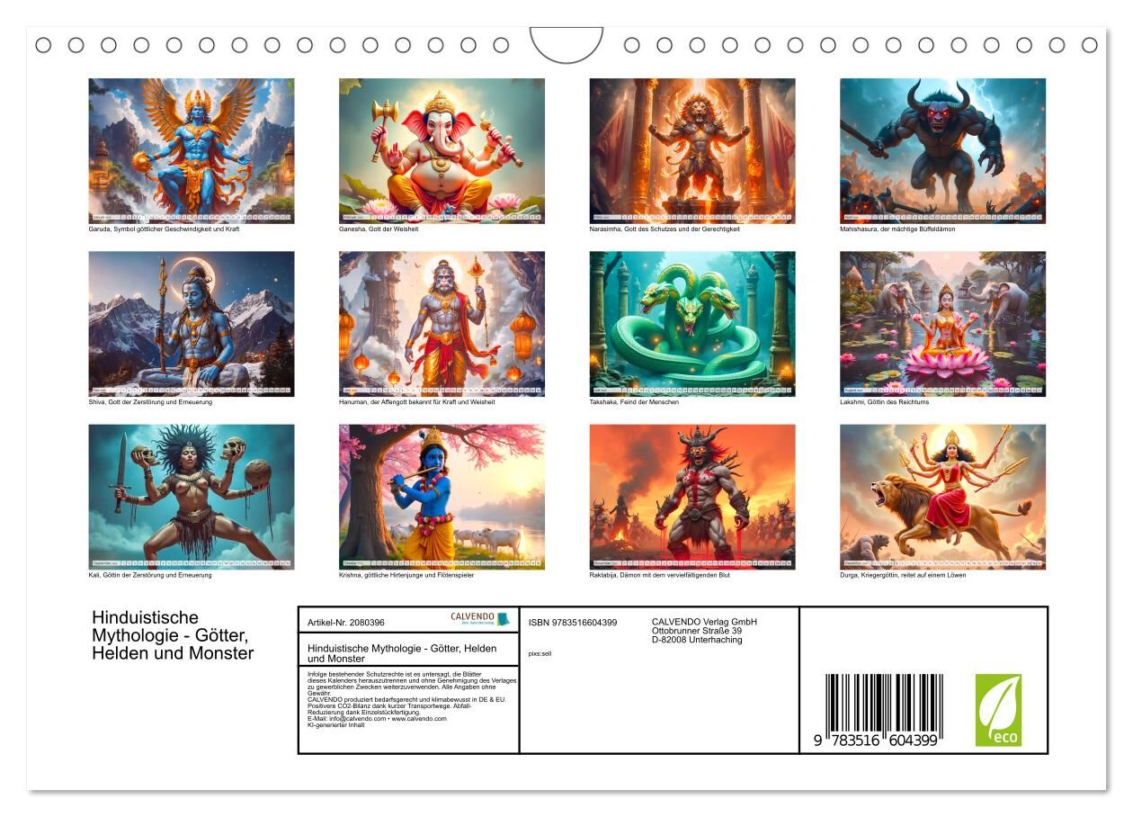 Hinduistische Mythologie - Götter, Helden und Monster (Wandkalender 2026 DIN A4 quer), CALVENDO Monatskalender