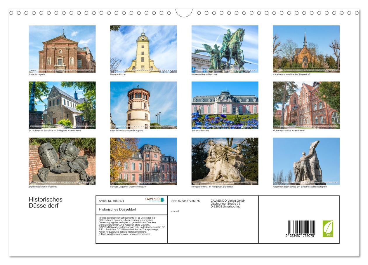 Der Kalender nimmt Sie mit auf einen Rundgang durch das historische Düsseldorf und zeigt Ihnen eine Auswahl der schönsten und prachtvollsten Bauten und Denkmäler. Eine Zeitreise von beeindruckenden Kirchen, eindrucksvollen Gebäuden und Persönlichkeiten.